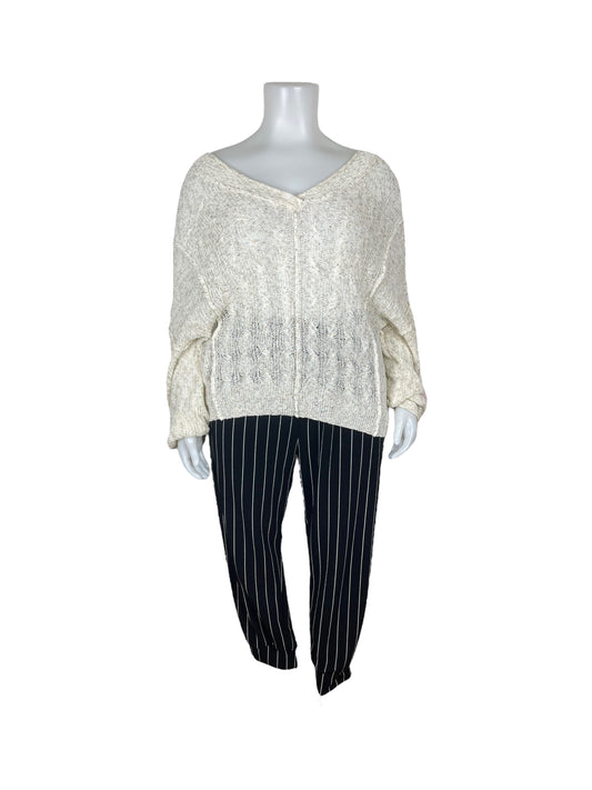 Cream Crewneck Long Sleeved Knit Sweater