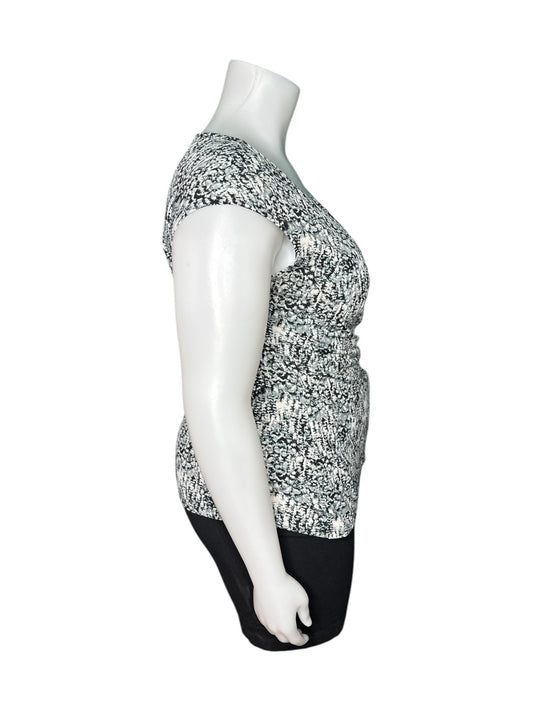Black & White Key Patterned V-neck T-Shirts