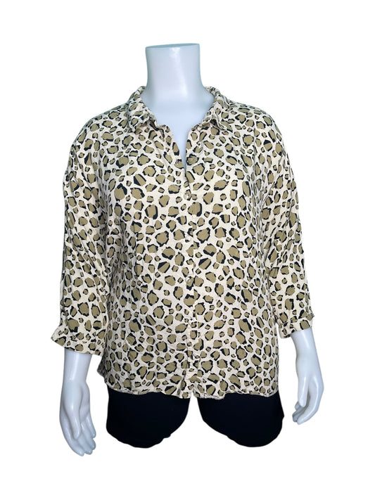 Teal w/ Flamingo Short Sleeved Button Up Shirt