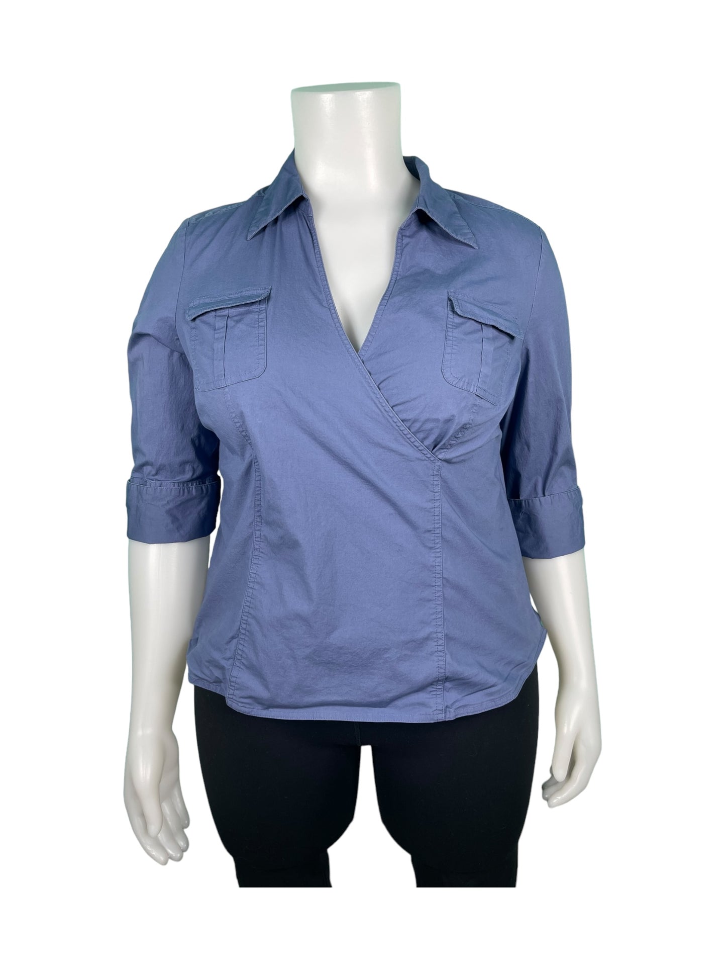 Vintage Blue 3/4 Sleeve v-Neck Blouse