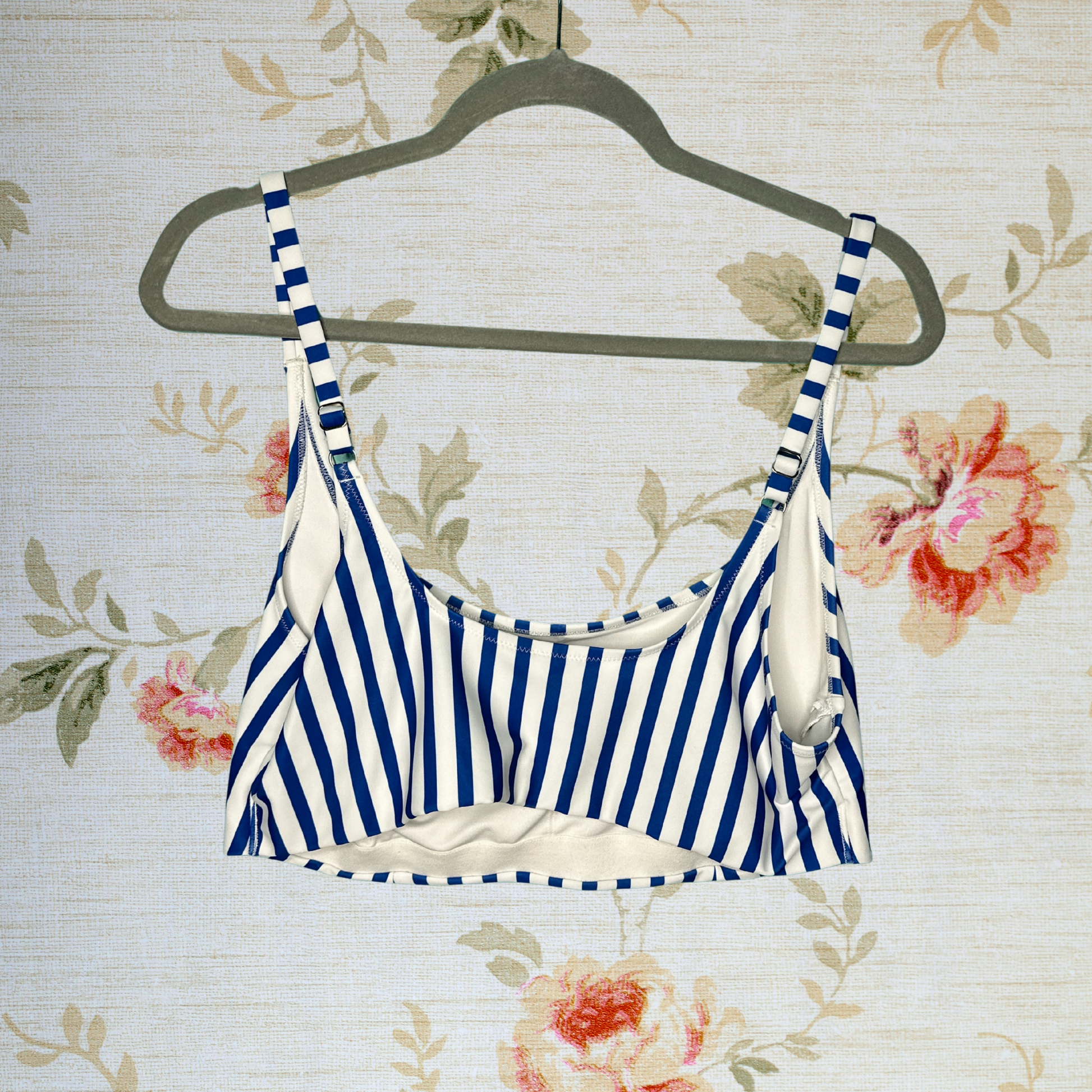 Blue and White Vertical Stripped Swim Top
