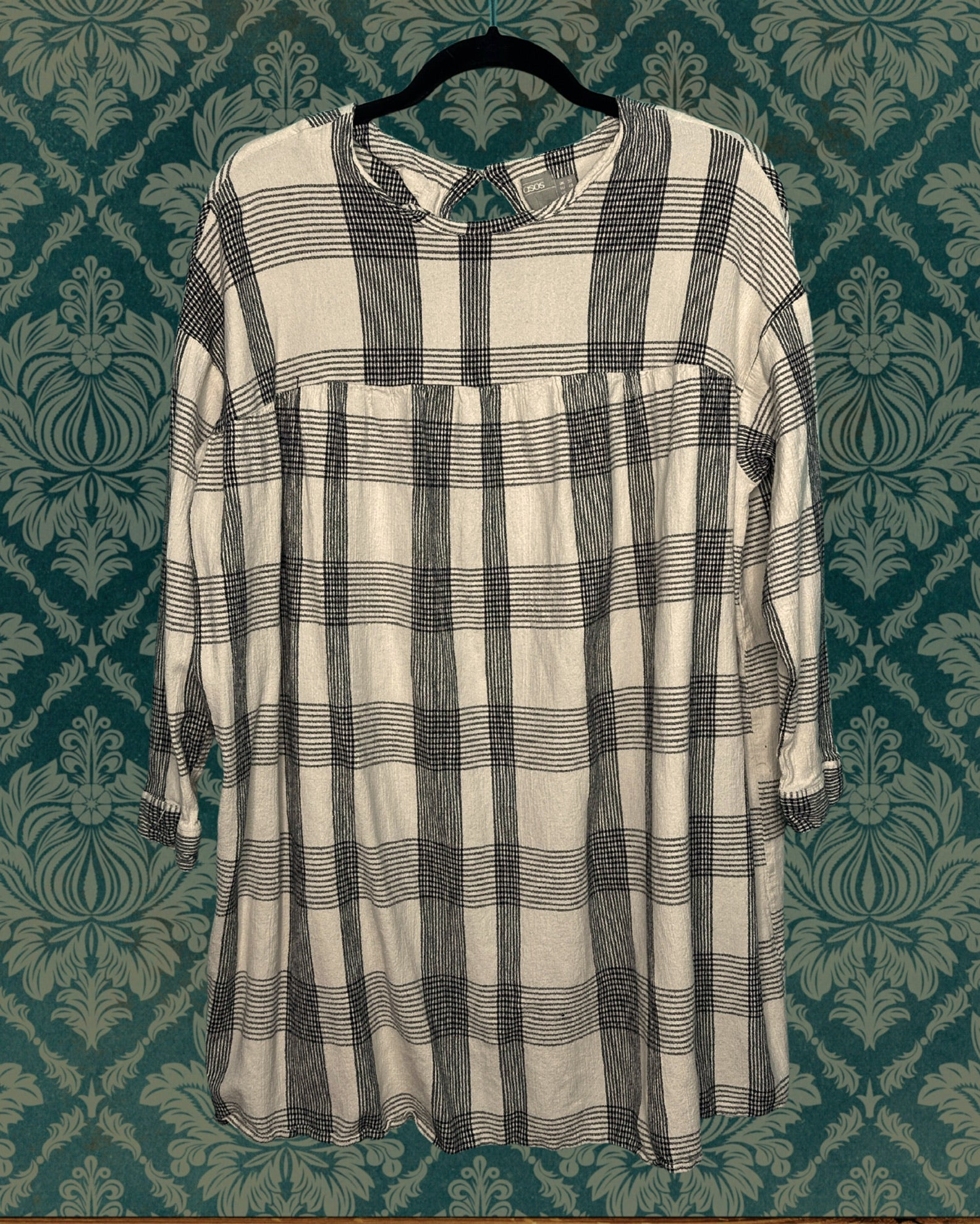 Cream & Black Plaid 3/4 Sleeved Tunic Top