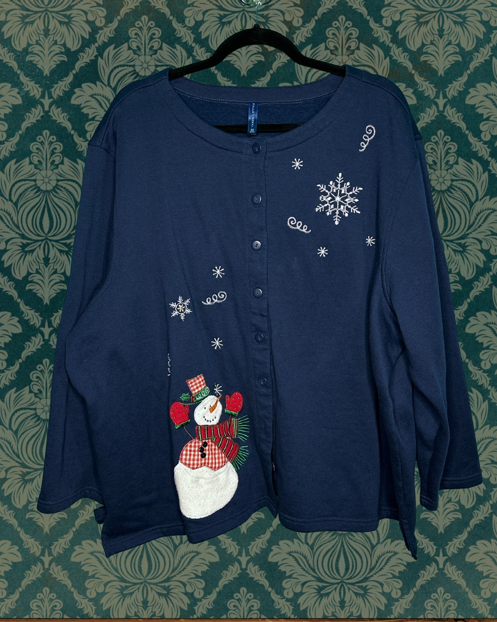 Navy Blue Embroidered Snowman Button up cardigan