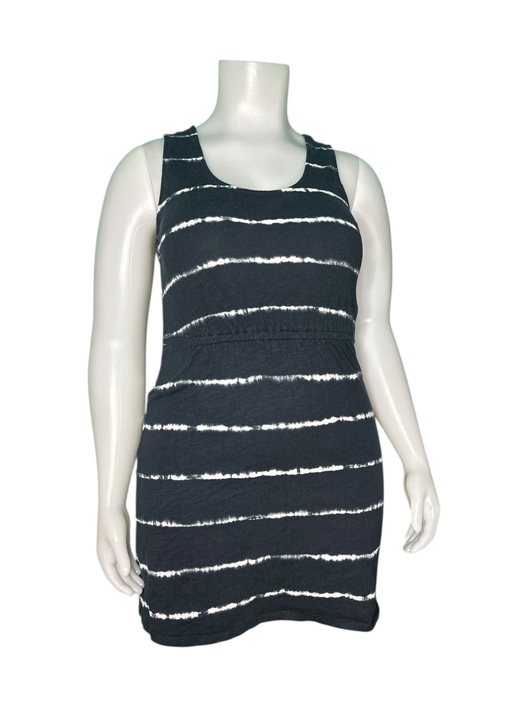 Navy Blue with White Horizontal Tie Dye Stripes Sleeveless Dress