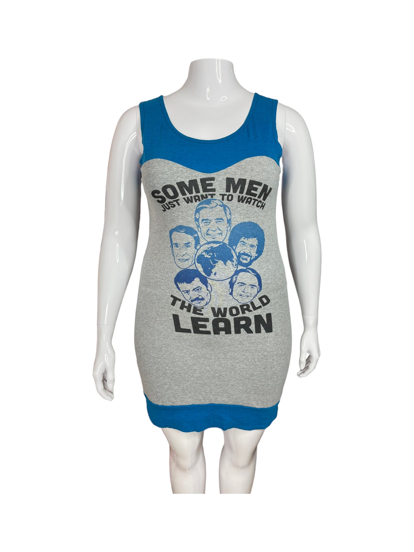 Blue & Grey Dress Graphic Sleeveless Mini Dress