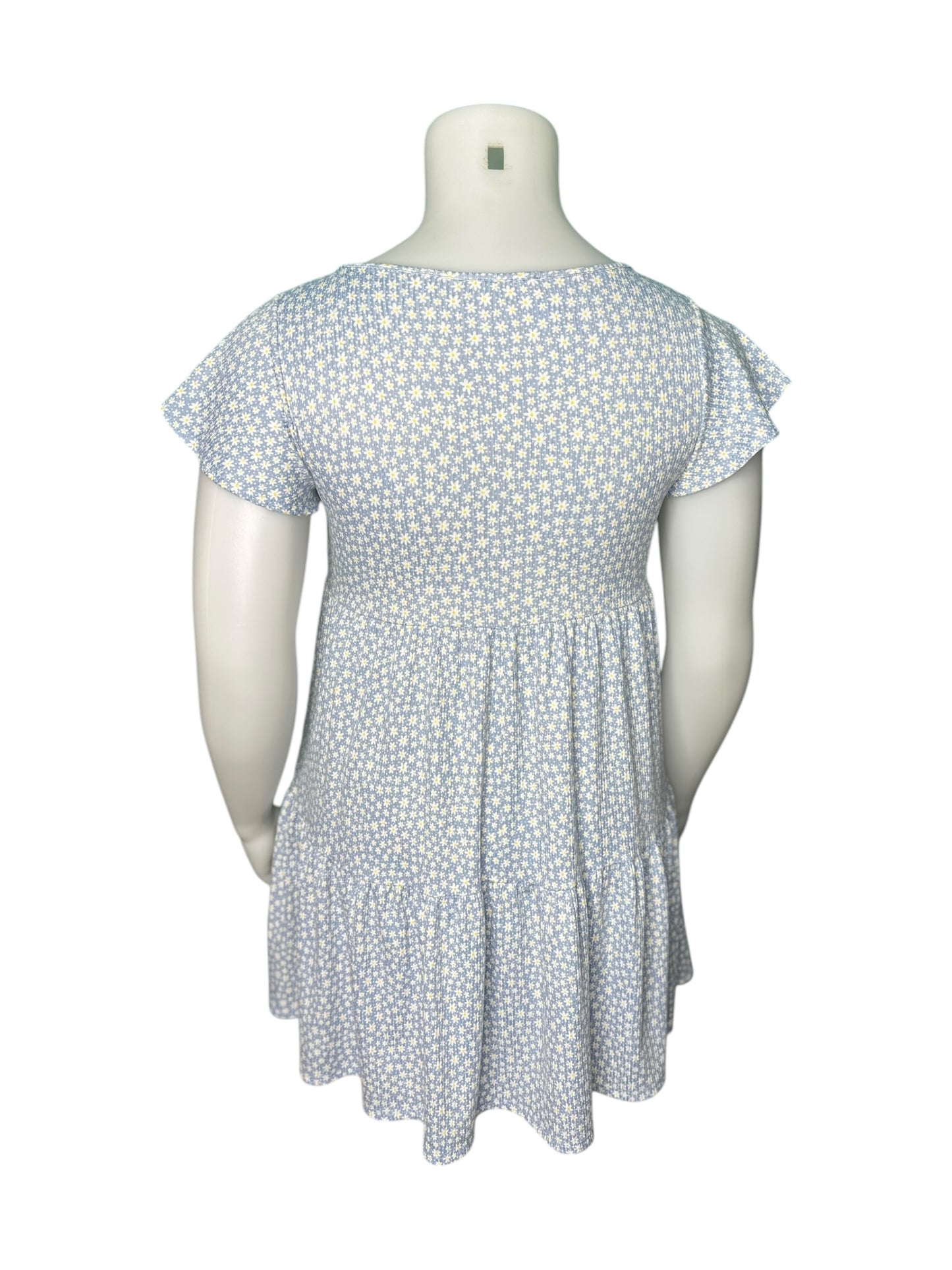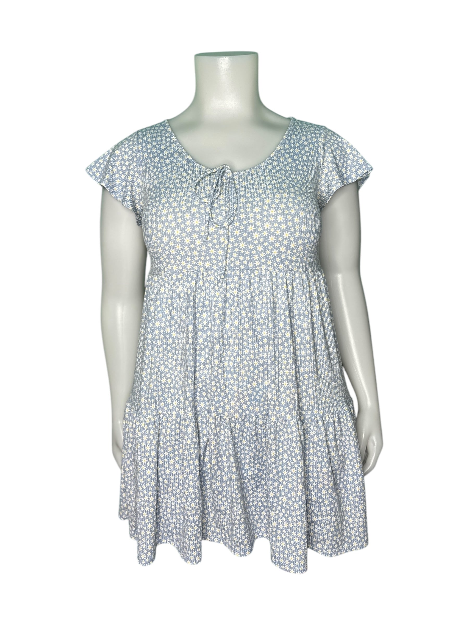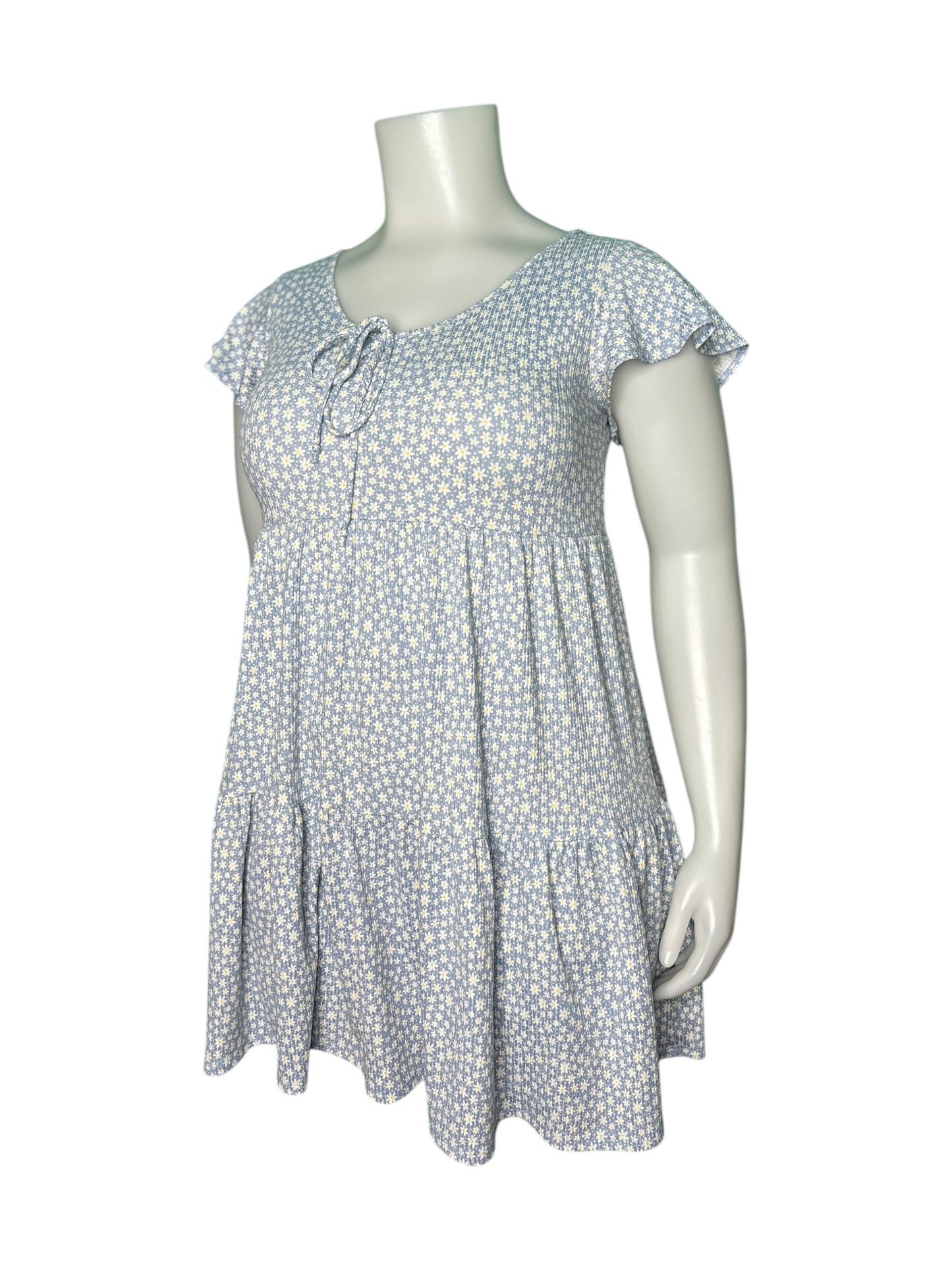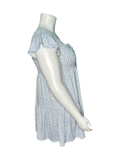 Baby Blue w/ White Floral Patterned Cap Sleeved Mini Dress