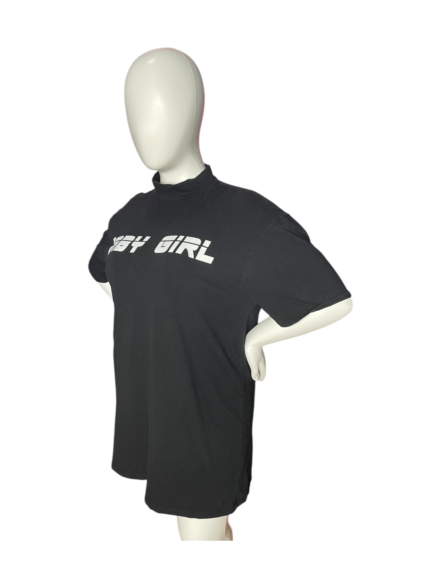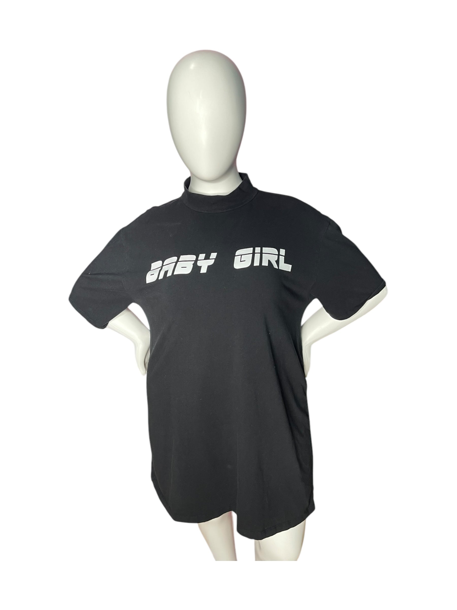 Black "Baby Girl" Mock Neck Short Sleeve Dress