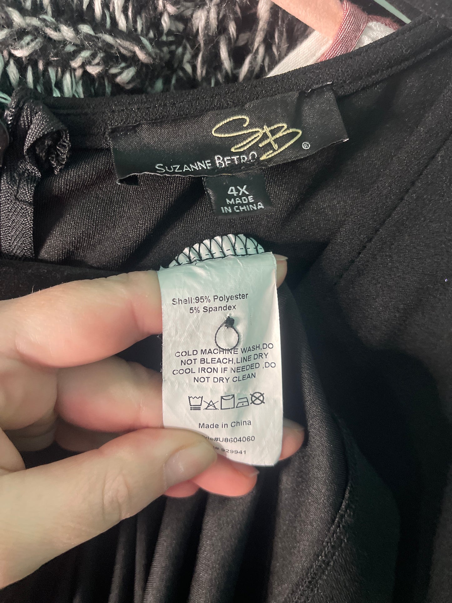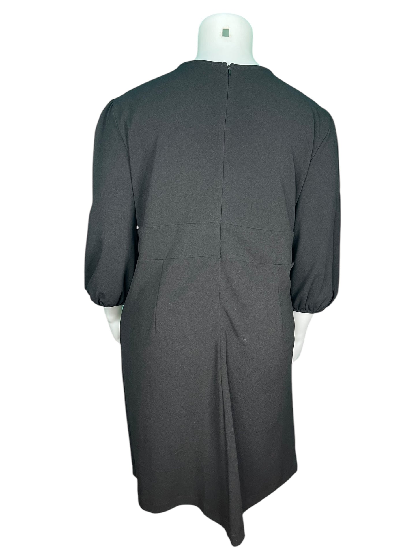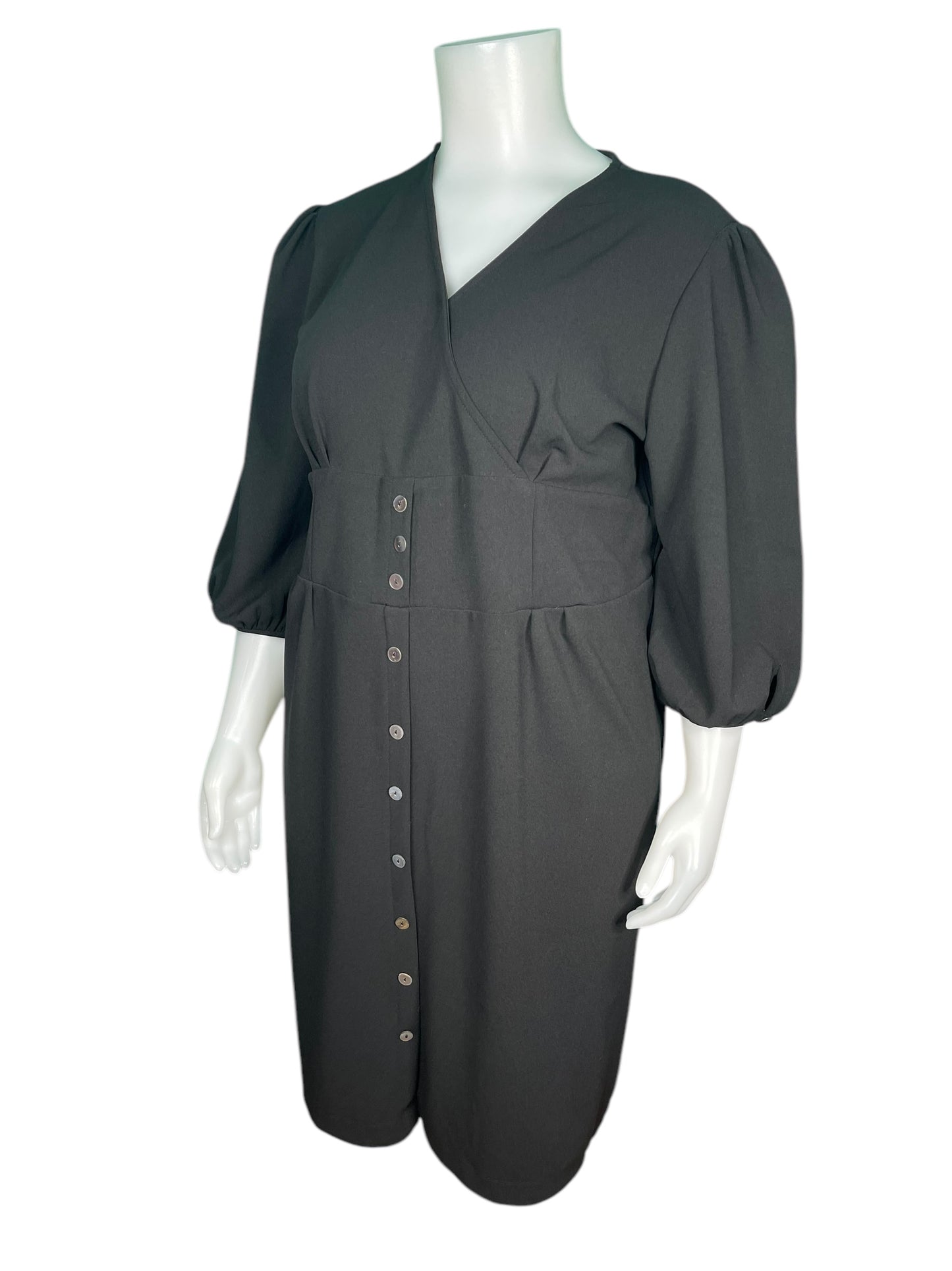 Black 3/4 Puff Sleeved V Neck Dress w/ Button Detail