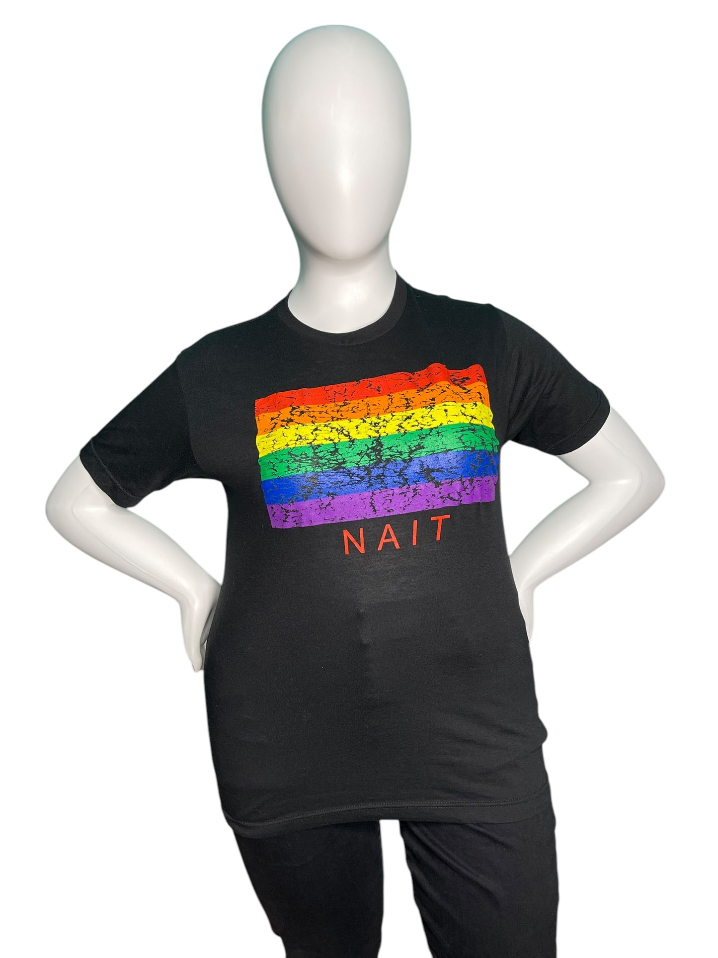 Black NAIT Rainbow Graphic. T-Shirt Top