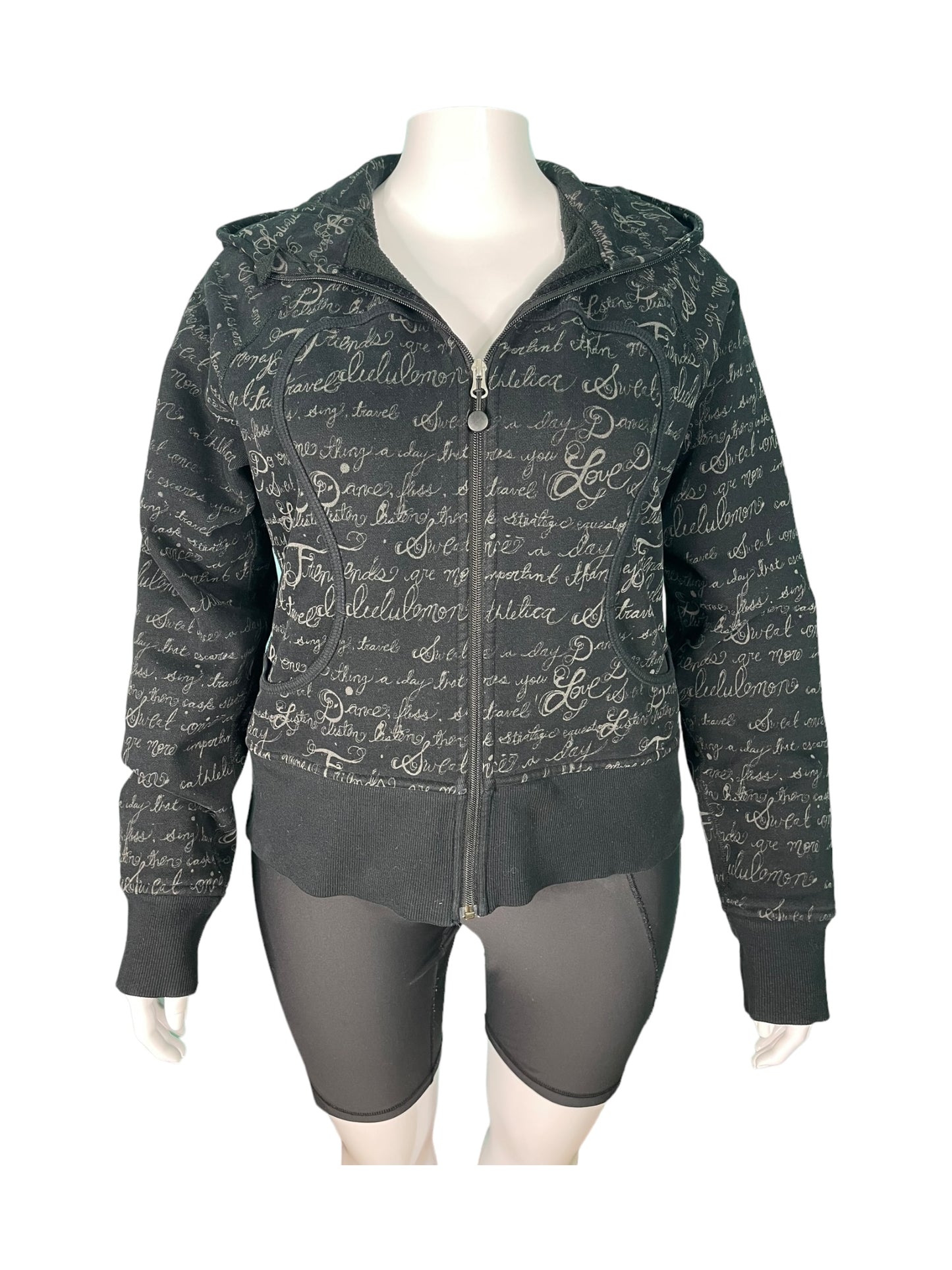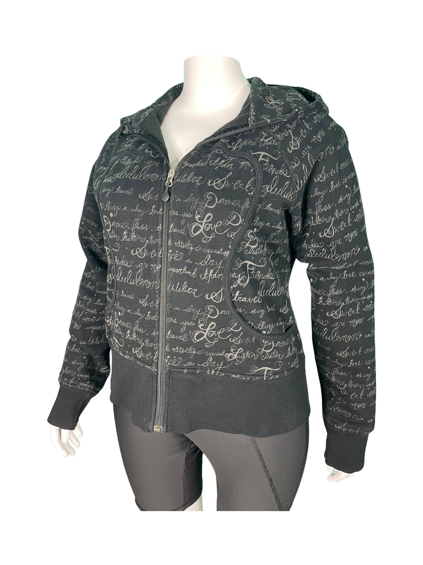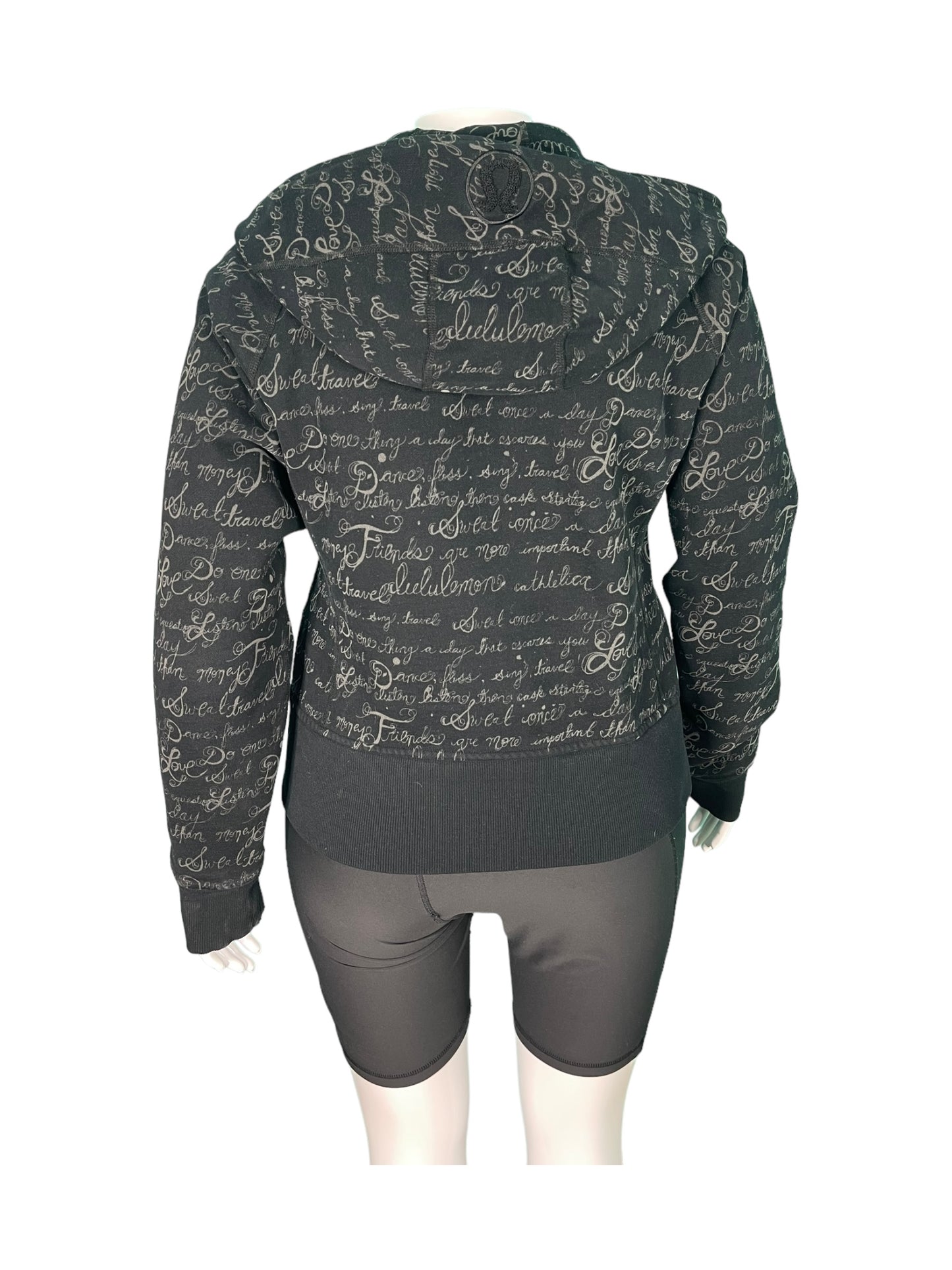 Black Zip Up Hoodie w/ Cursive Word Pattern