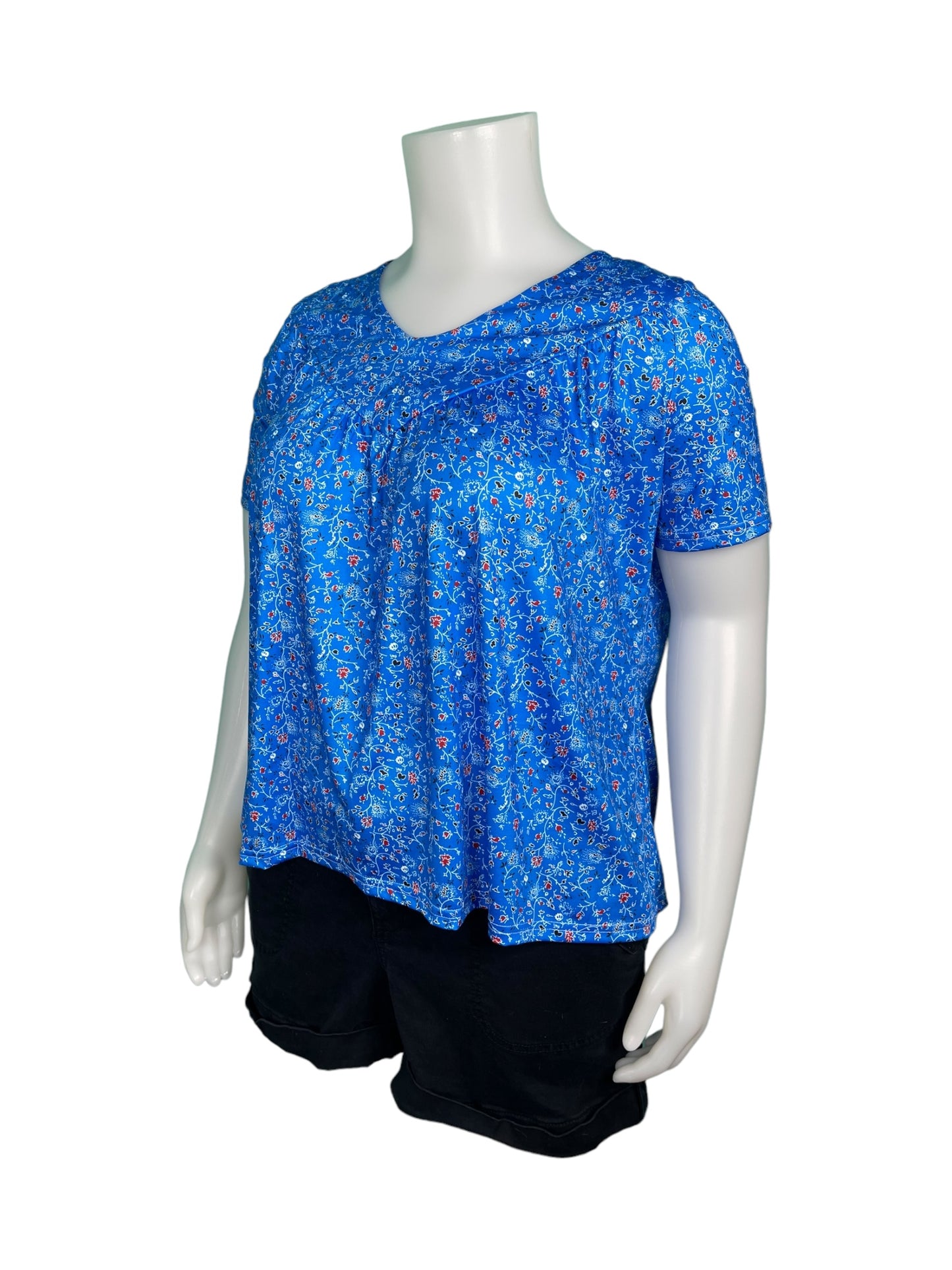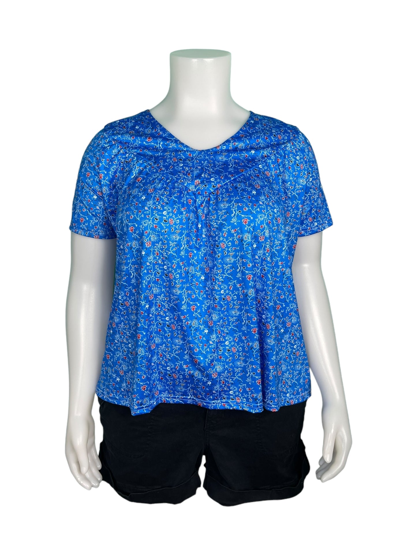 Blue Short Sleeved Floral Top