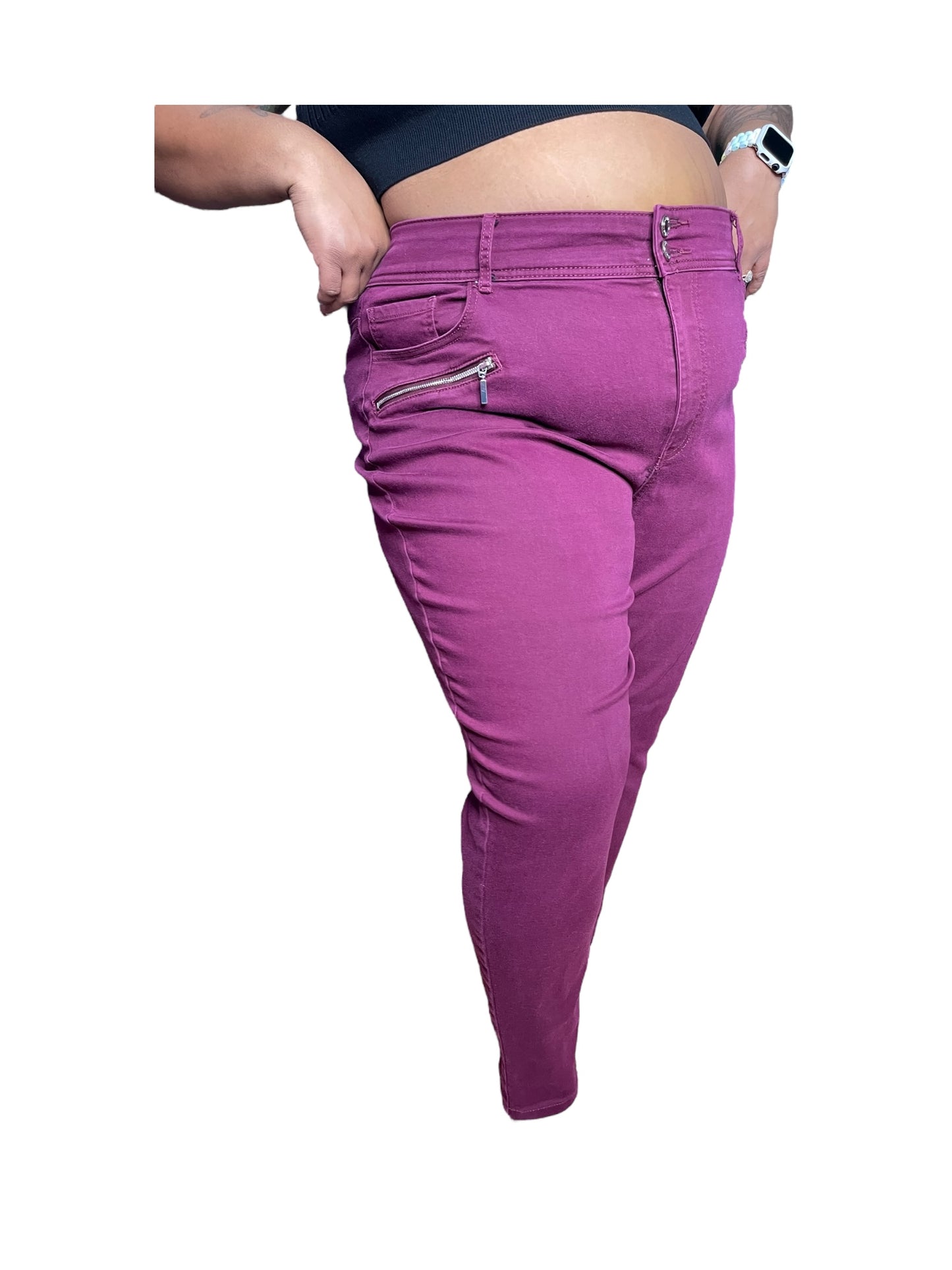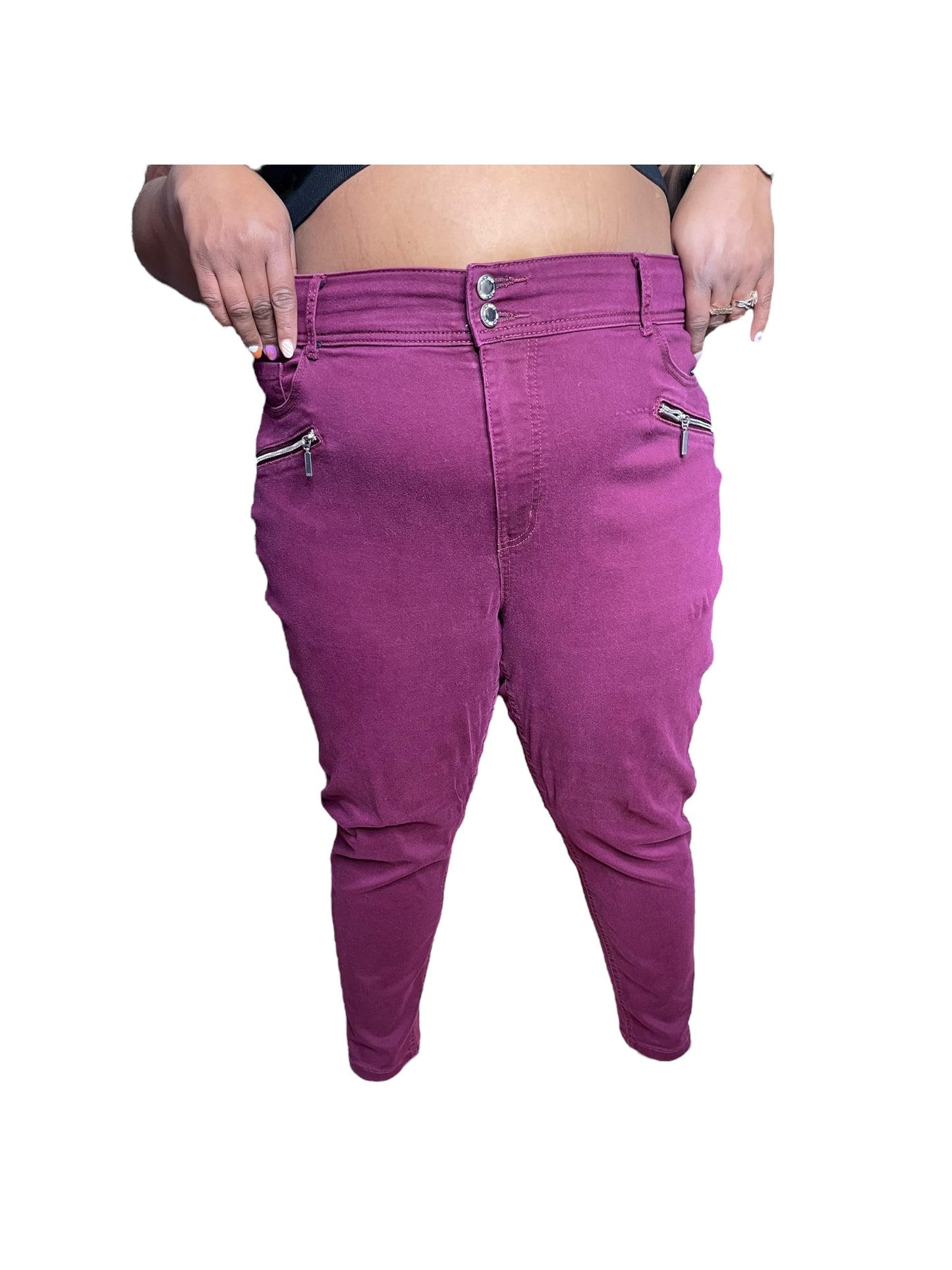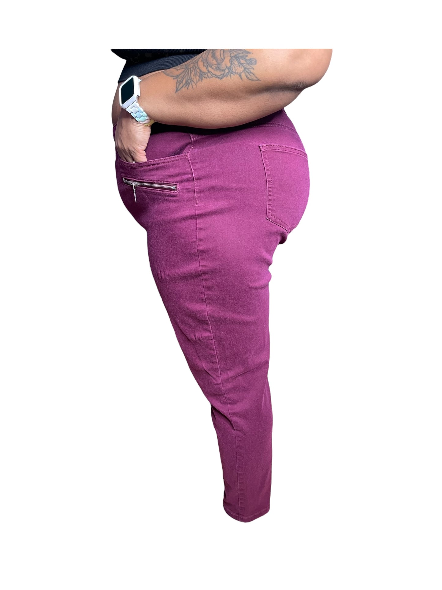Burgundy Zipper Detailed Pants