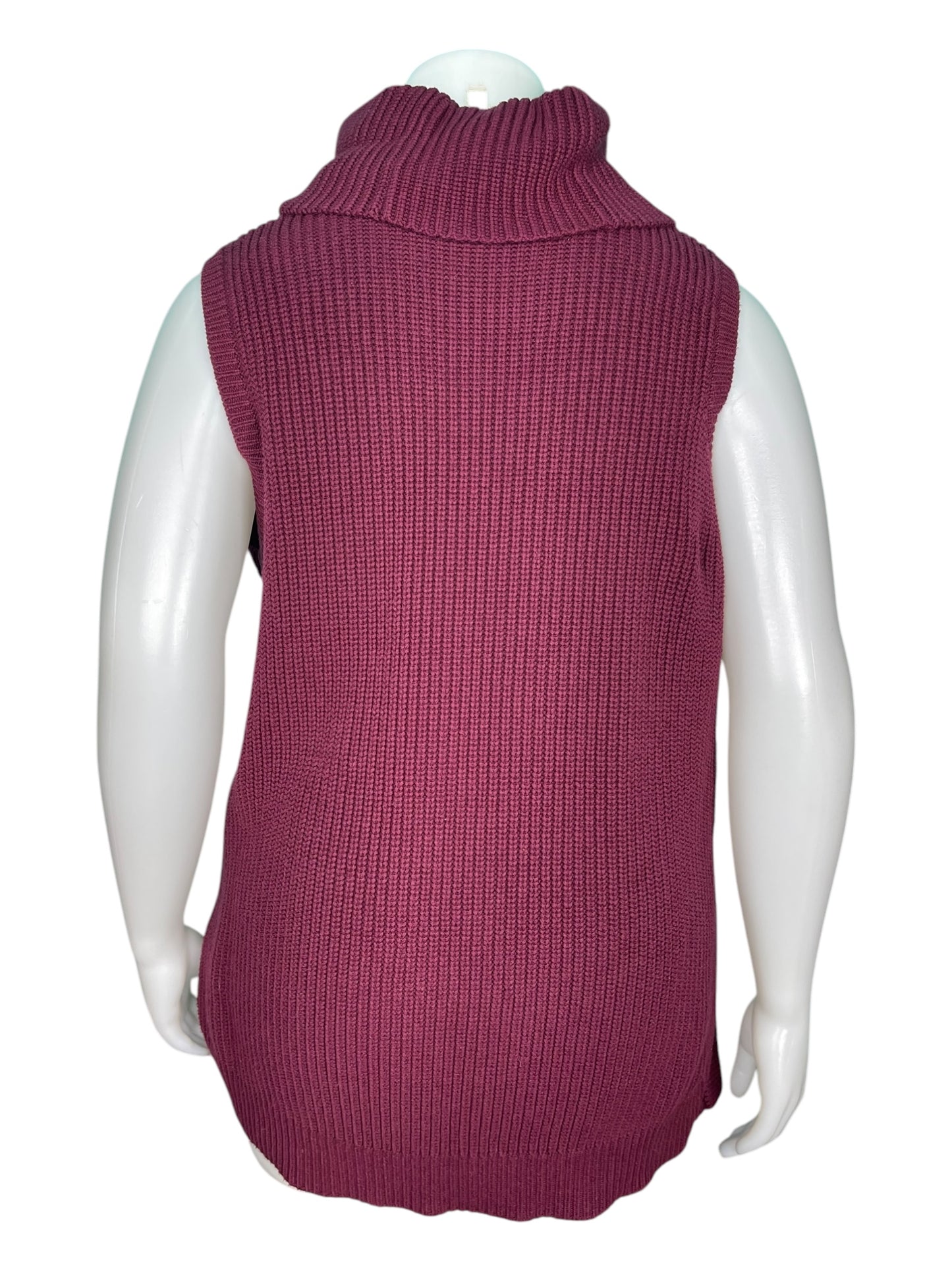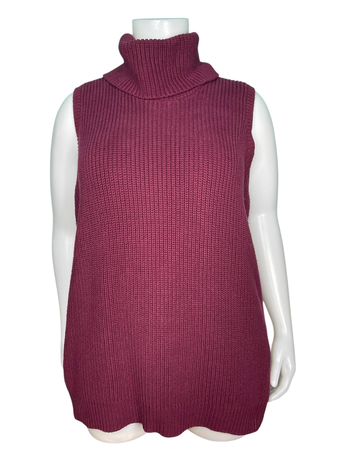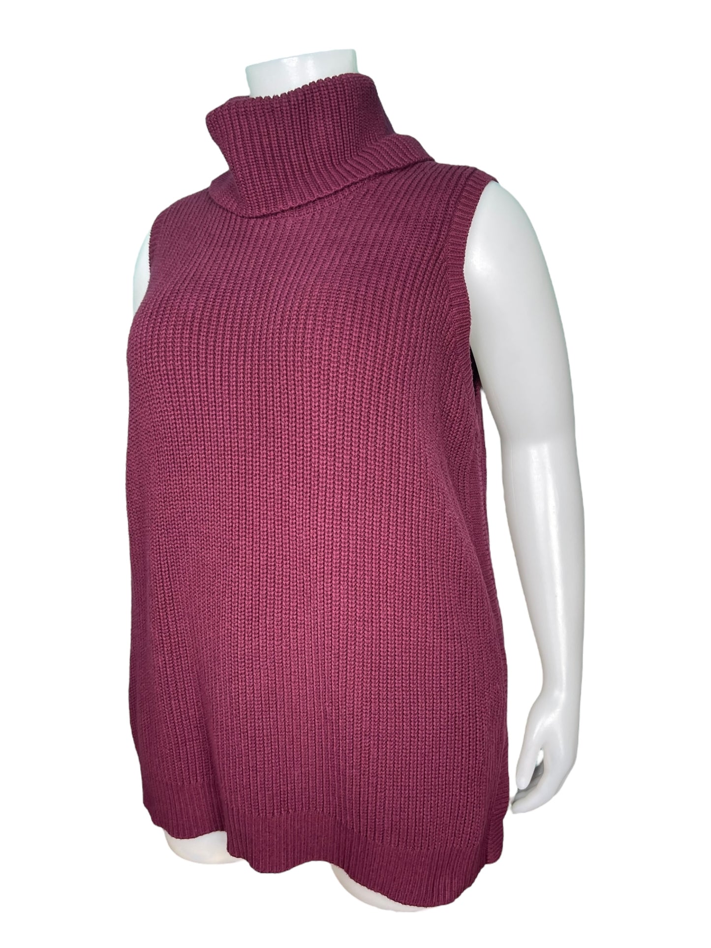 Burgundy Sleeveless Turtleneck Knit Sweater