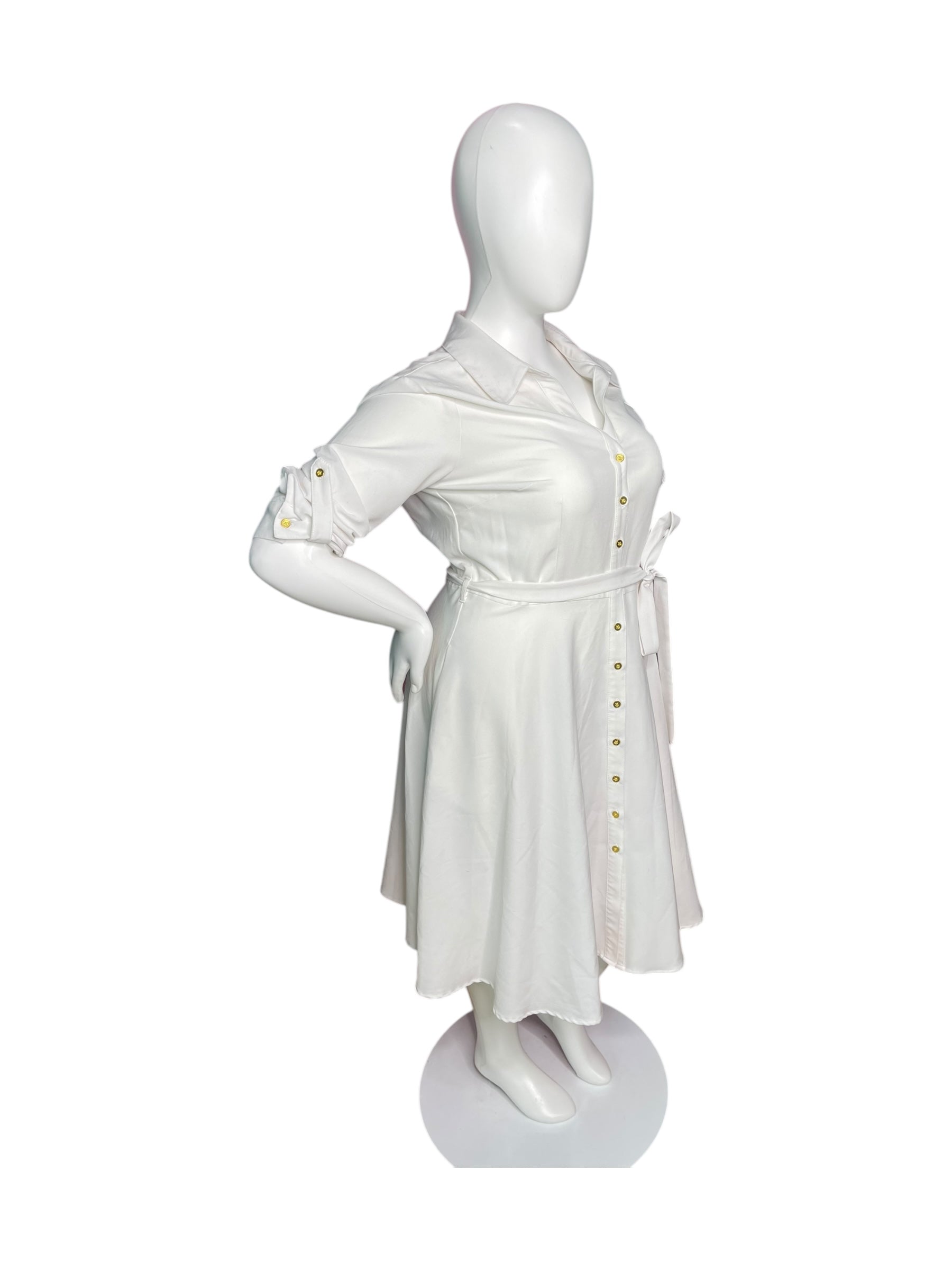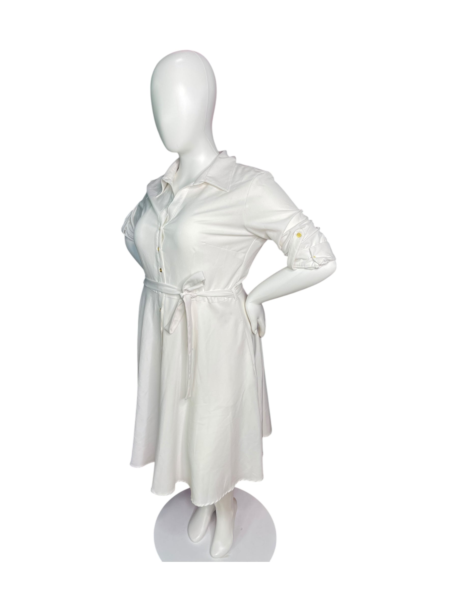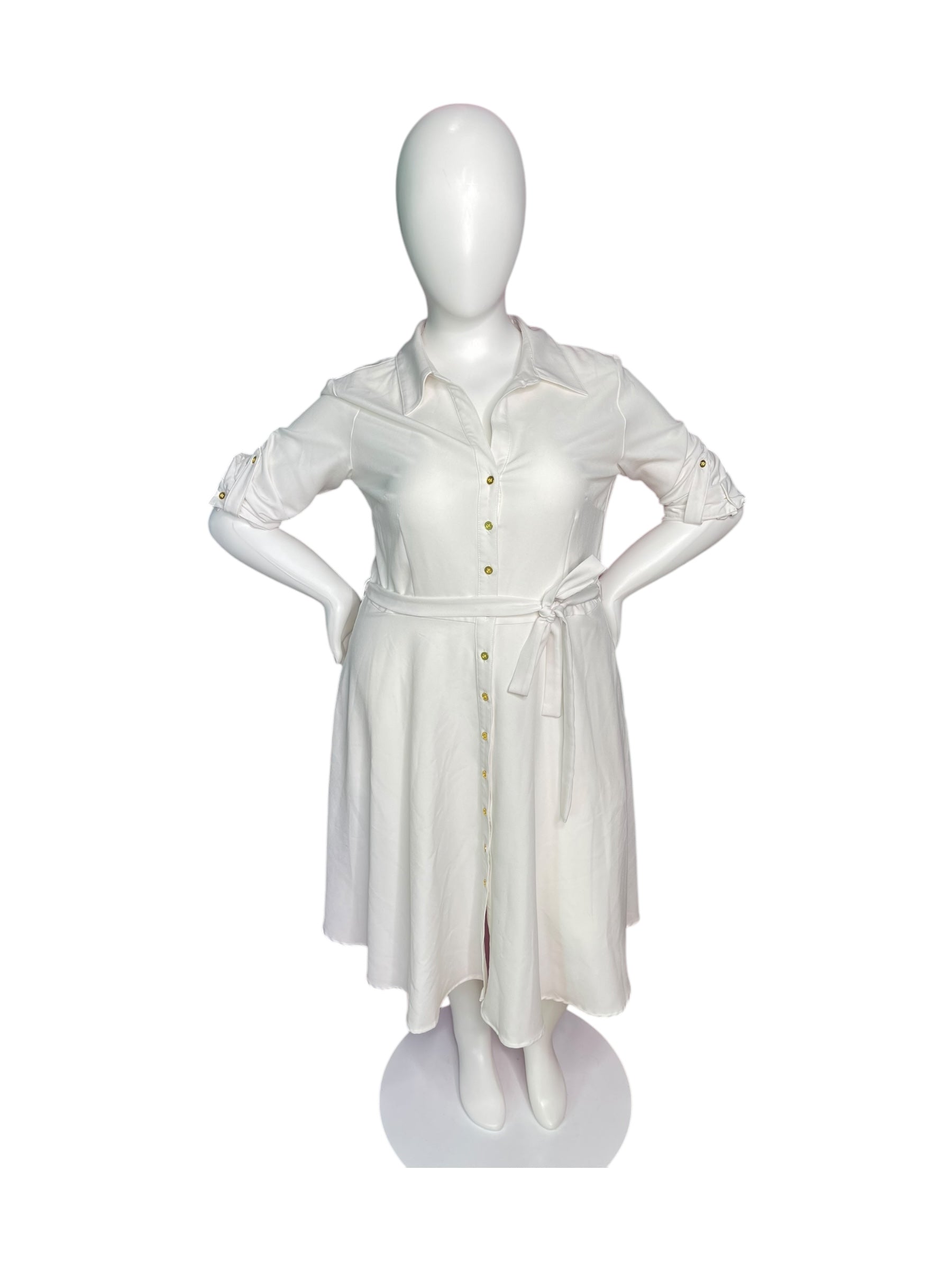 White 3/4 Sleeve Shirt Dress