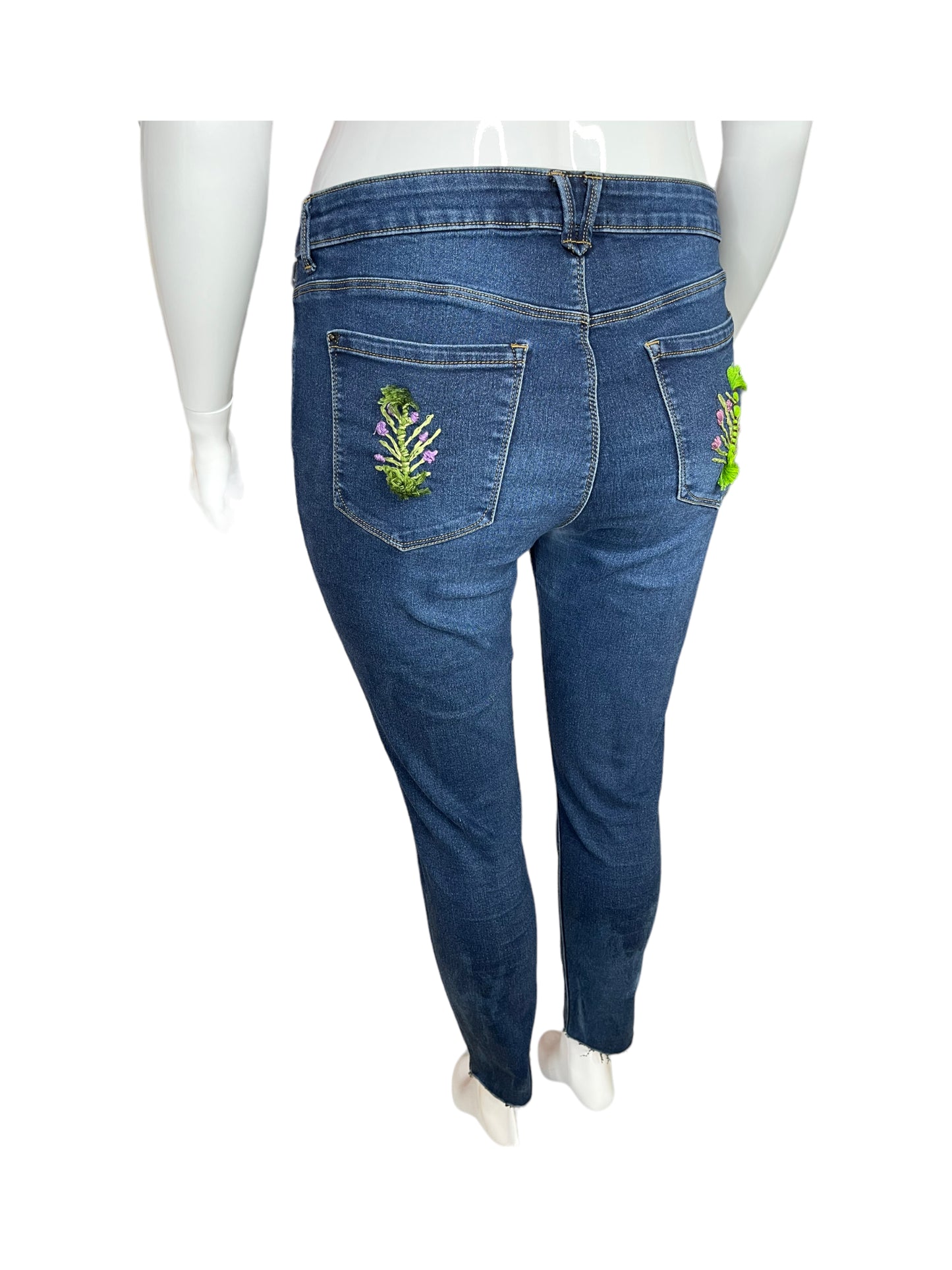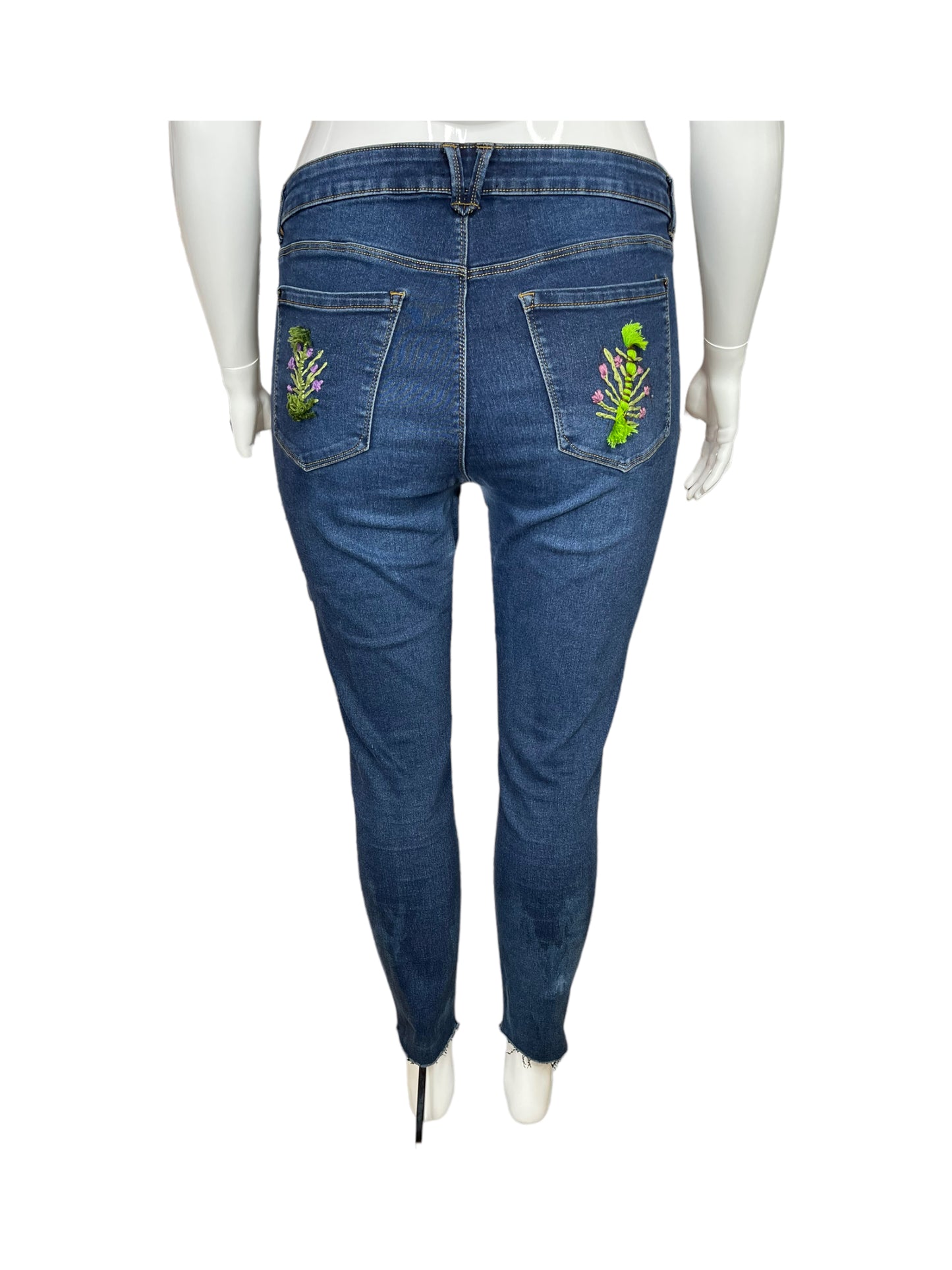 Blue Skinny Jeans w/ Embroidery on Back Pockets