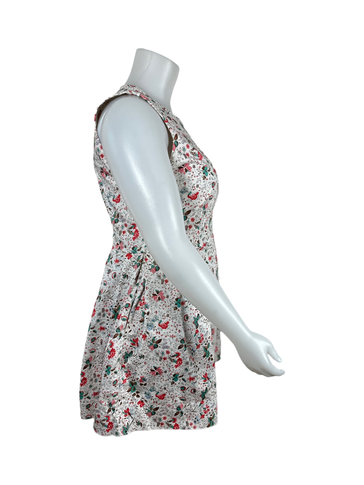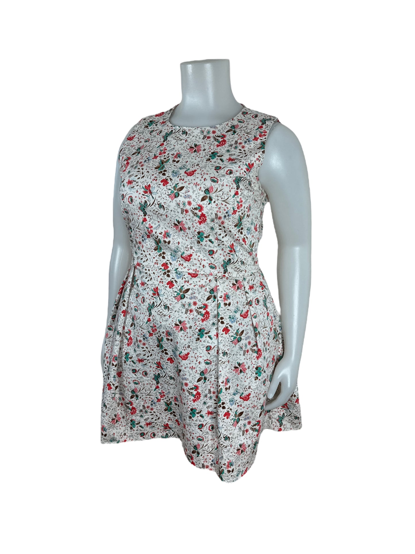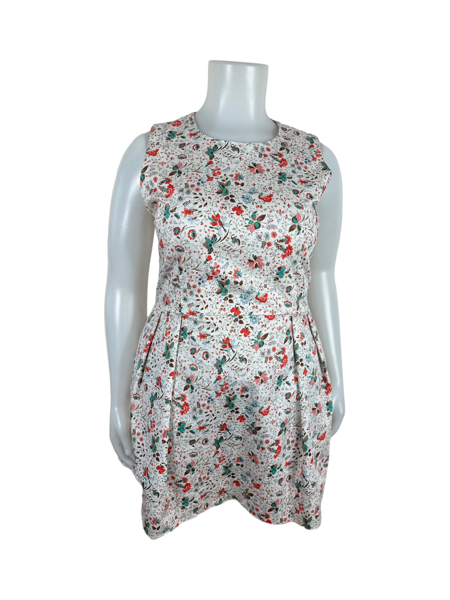 Beige, Red & Teal Sleeveless Shift Dress