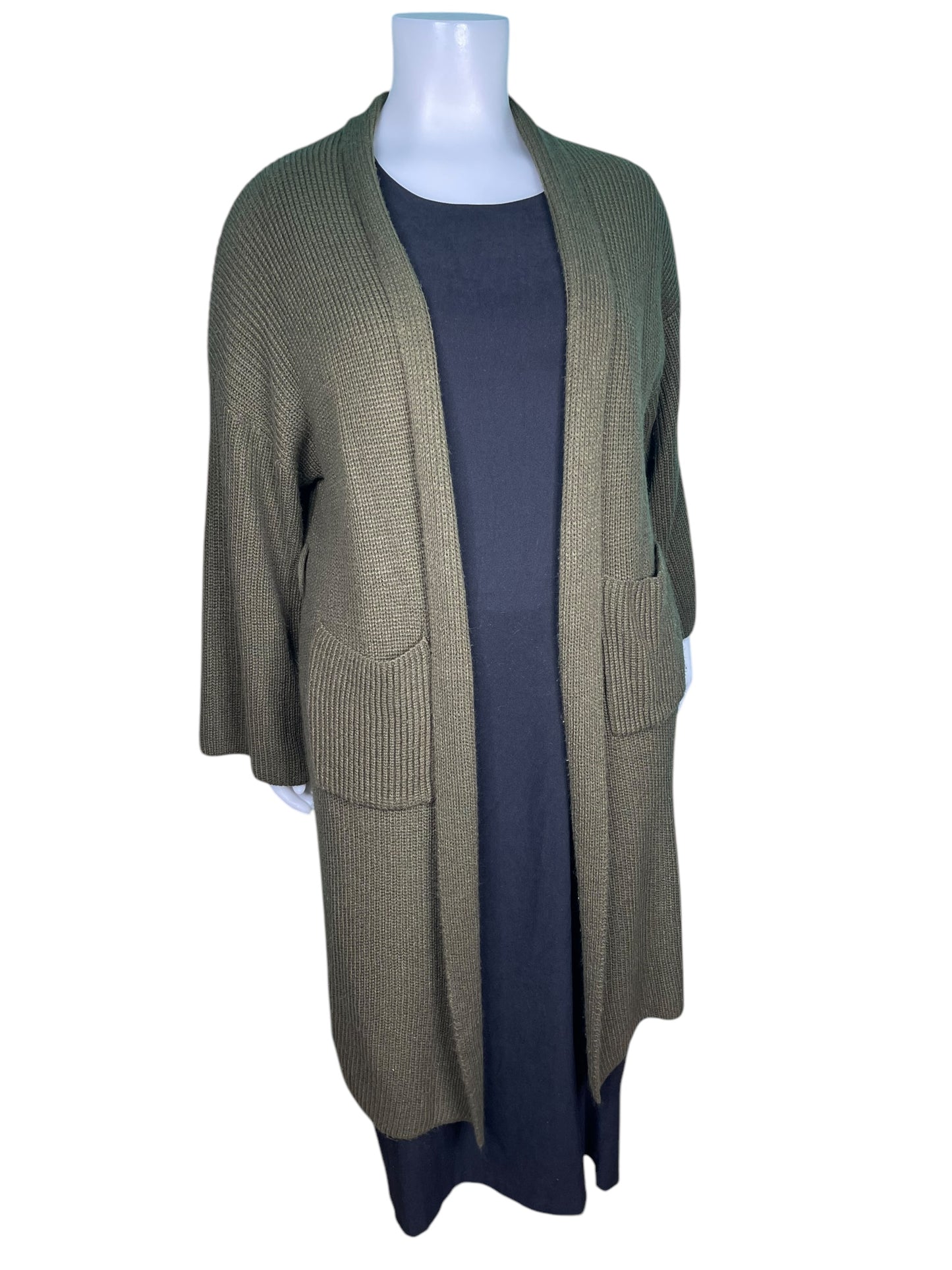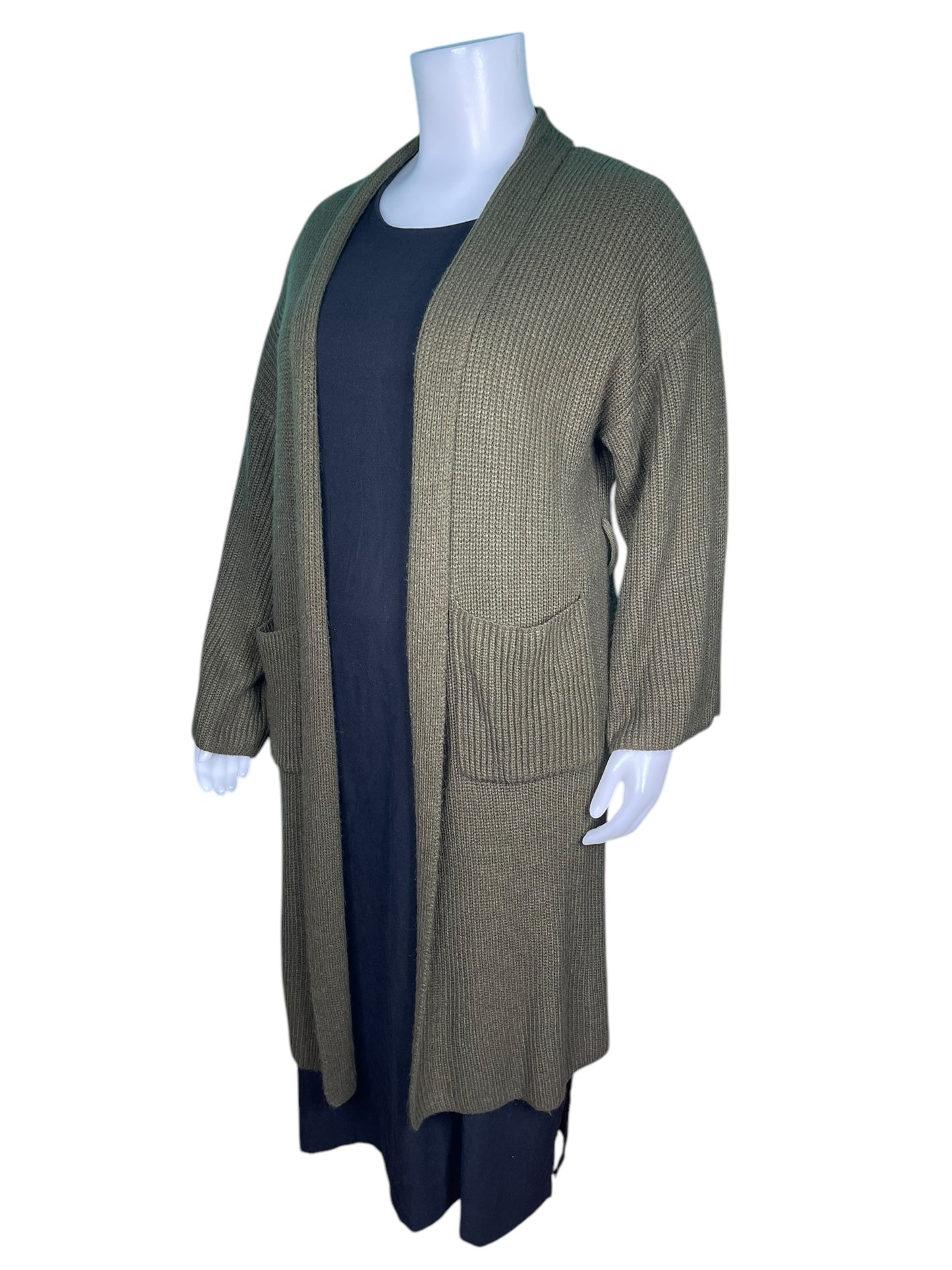Green London Sleeved Knit Maxi Cardigan