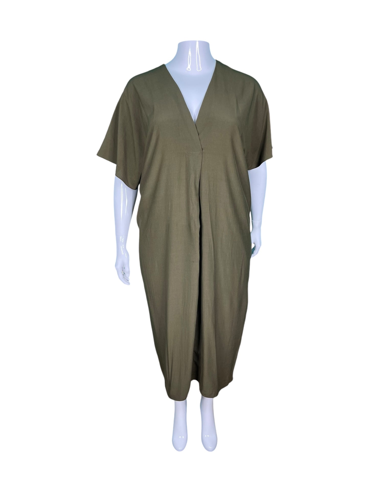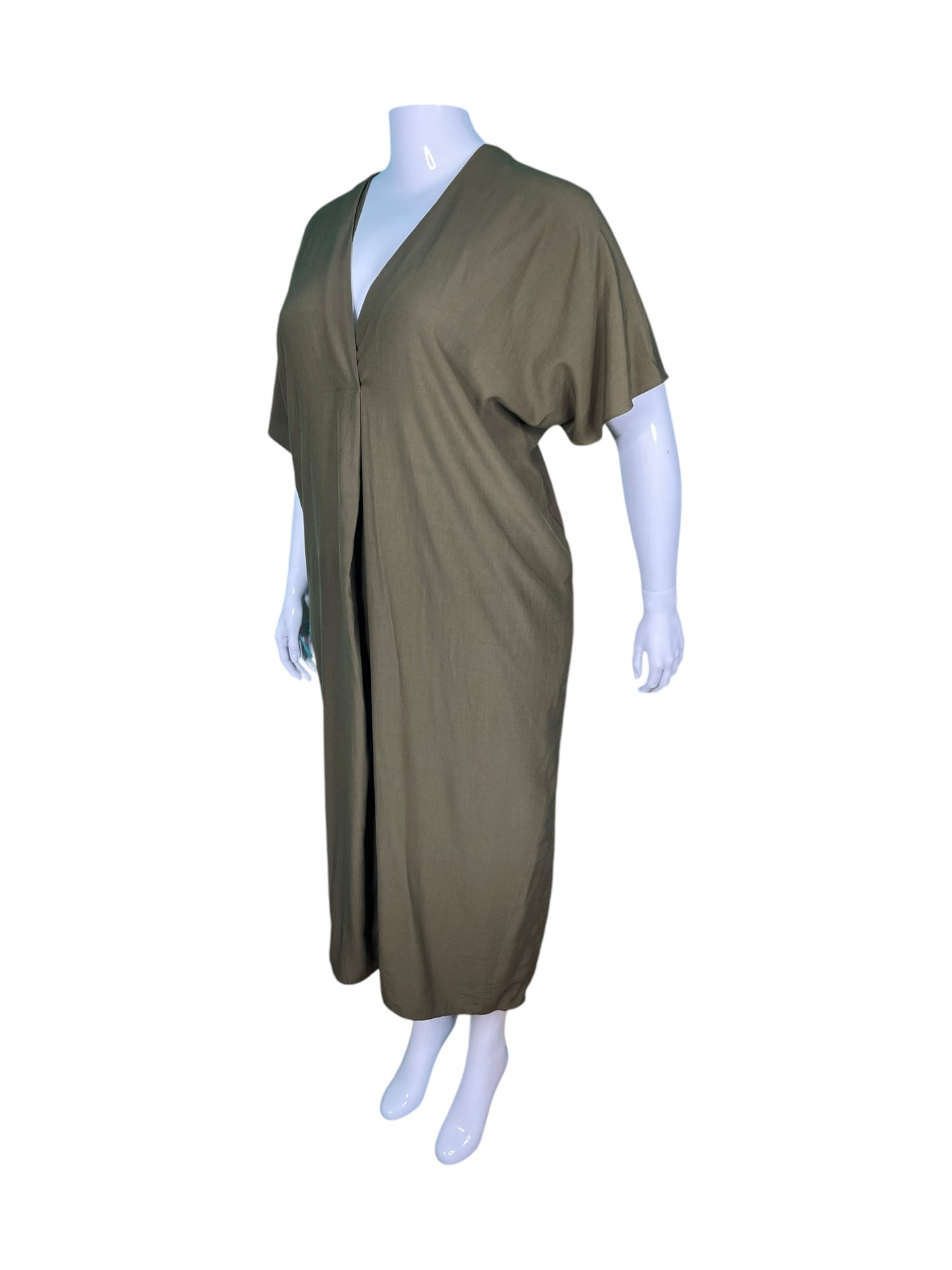 Green Deep V-Neck Short-Sleeved Maxi Dress