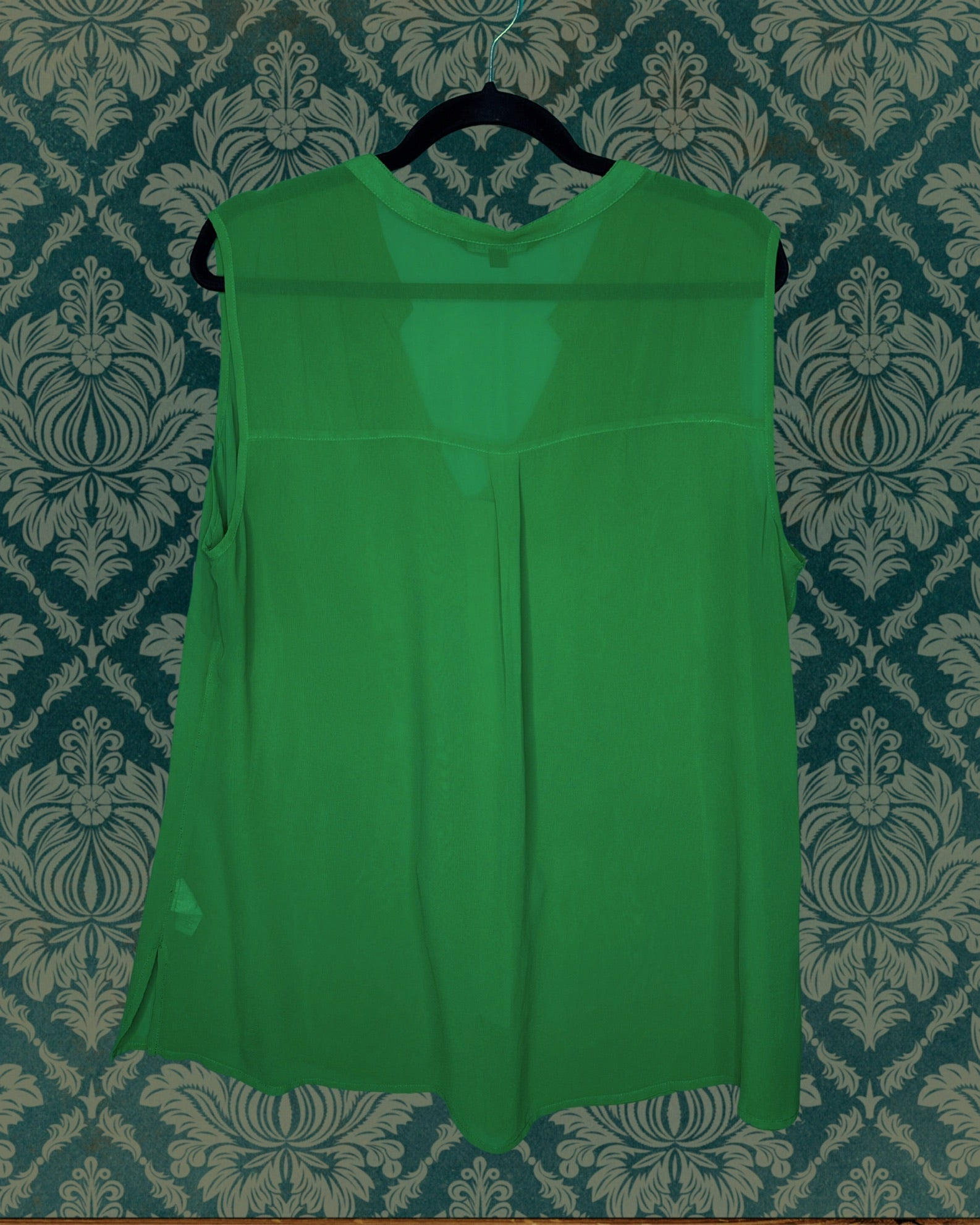 Green Sheer Sleeveless V-Neck Blouse