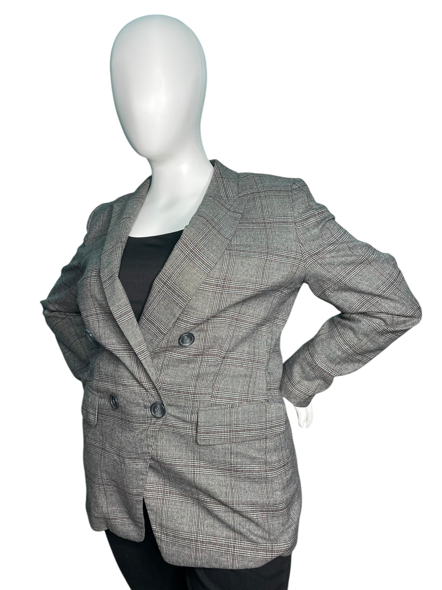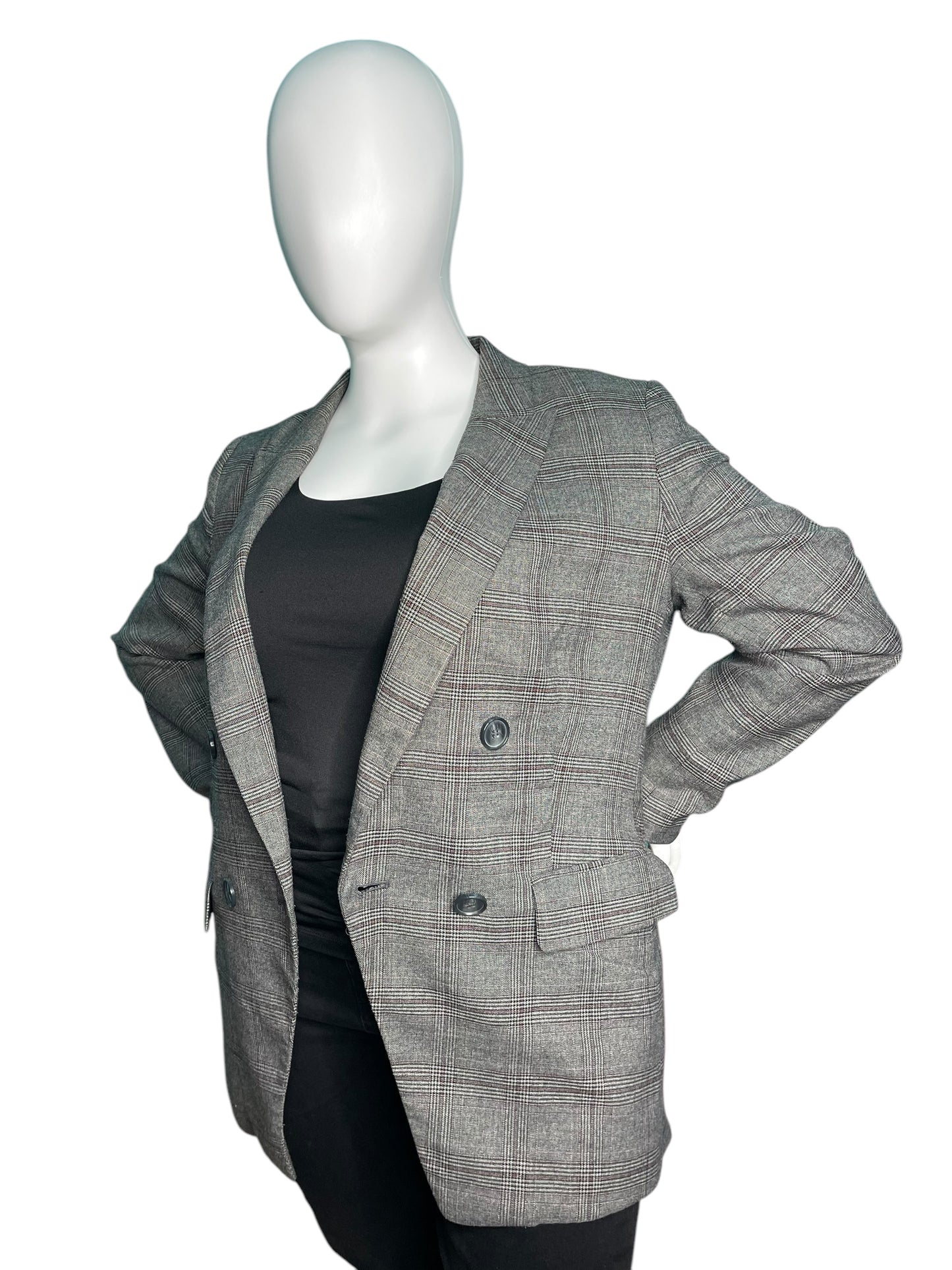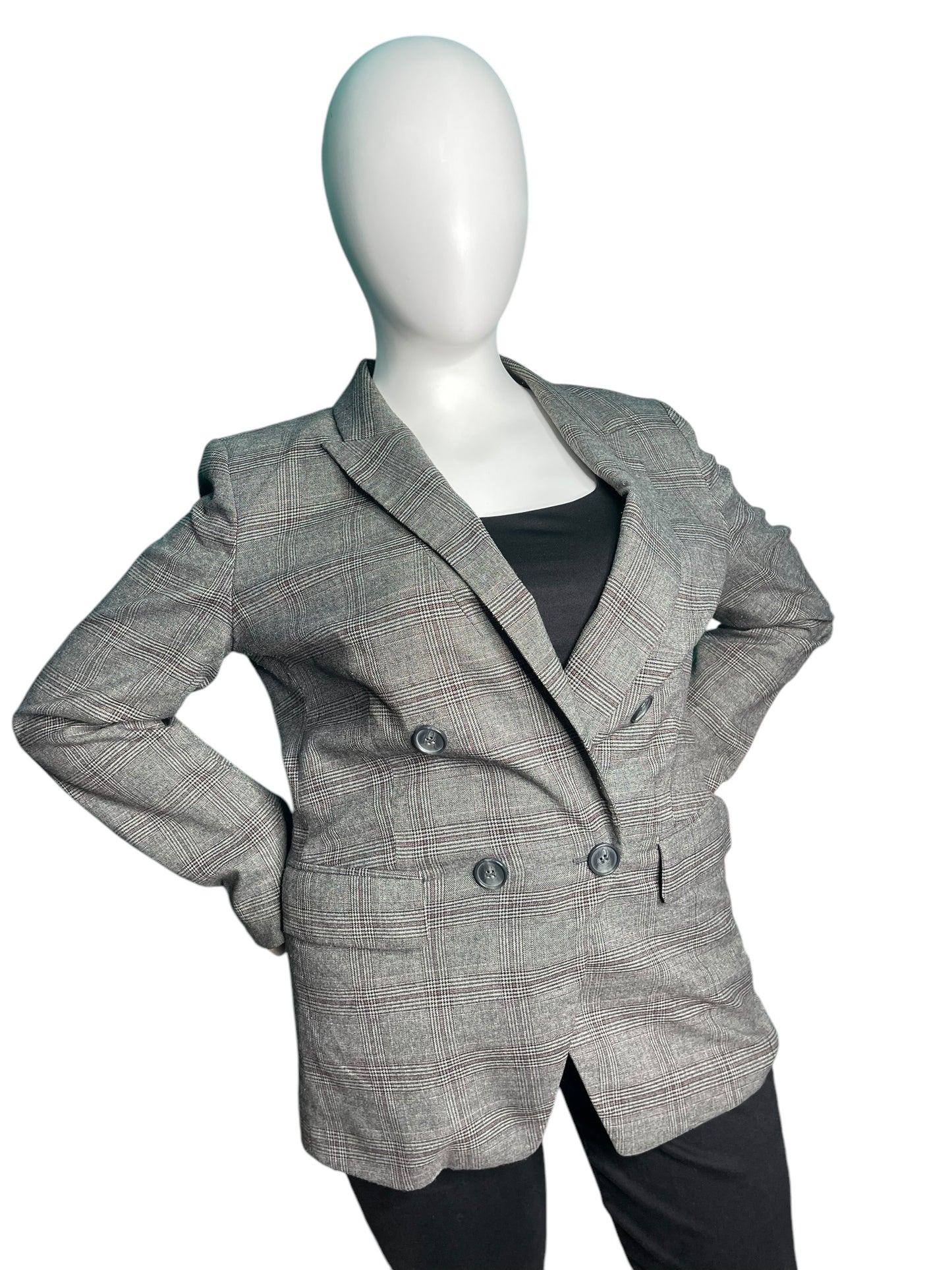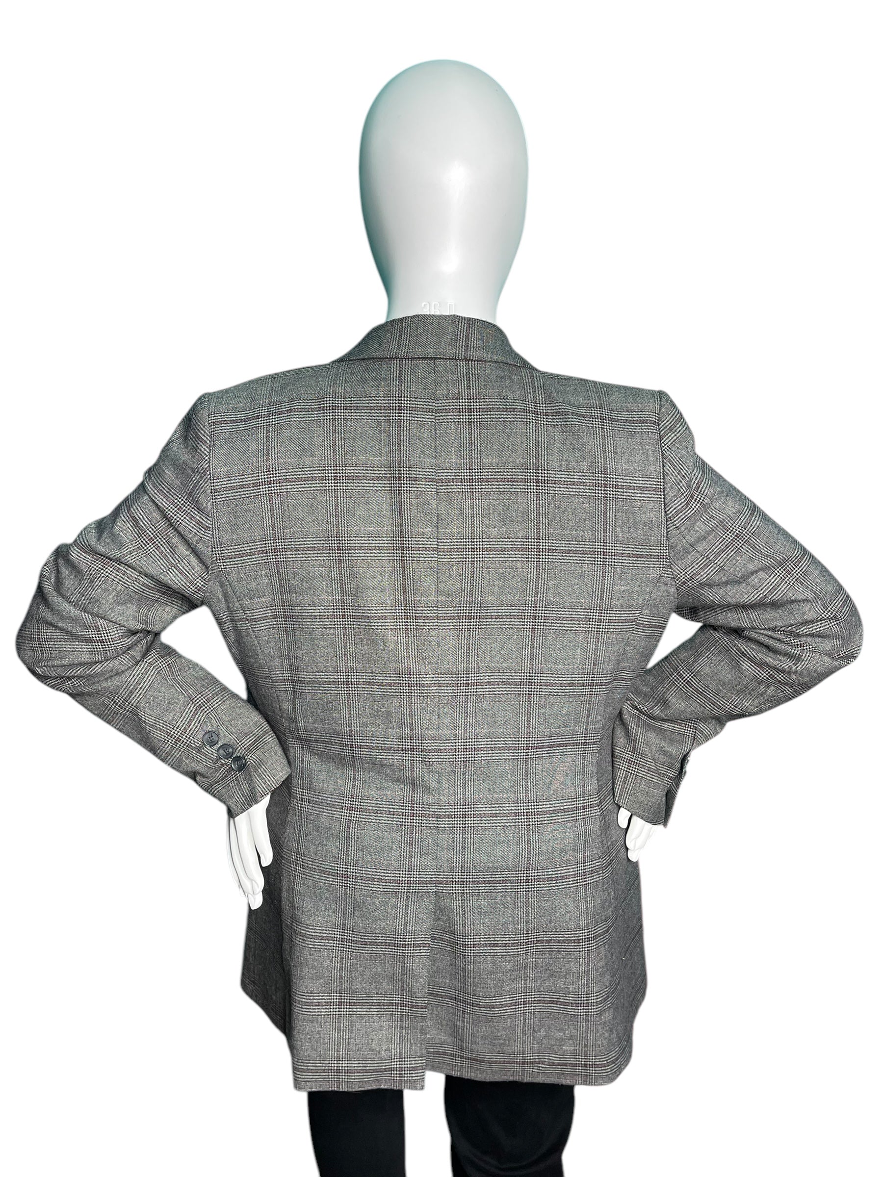 Grey Plaid Long Sleeved Blazer