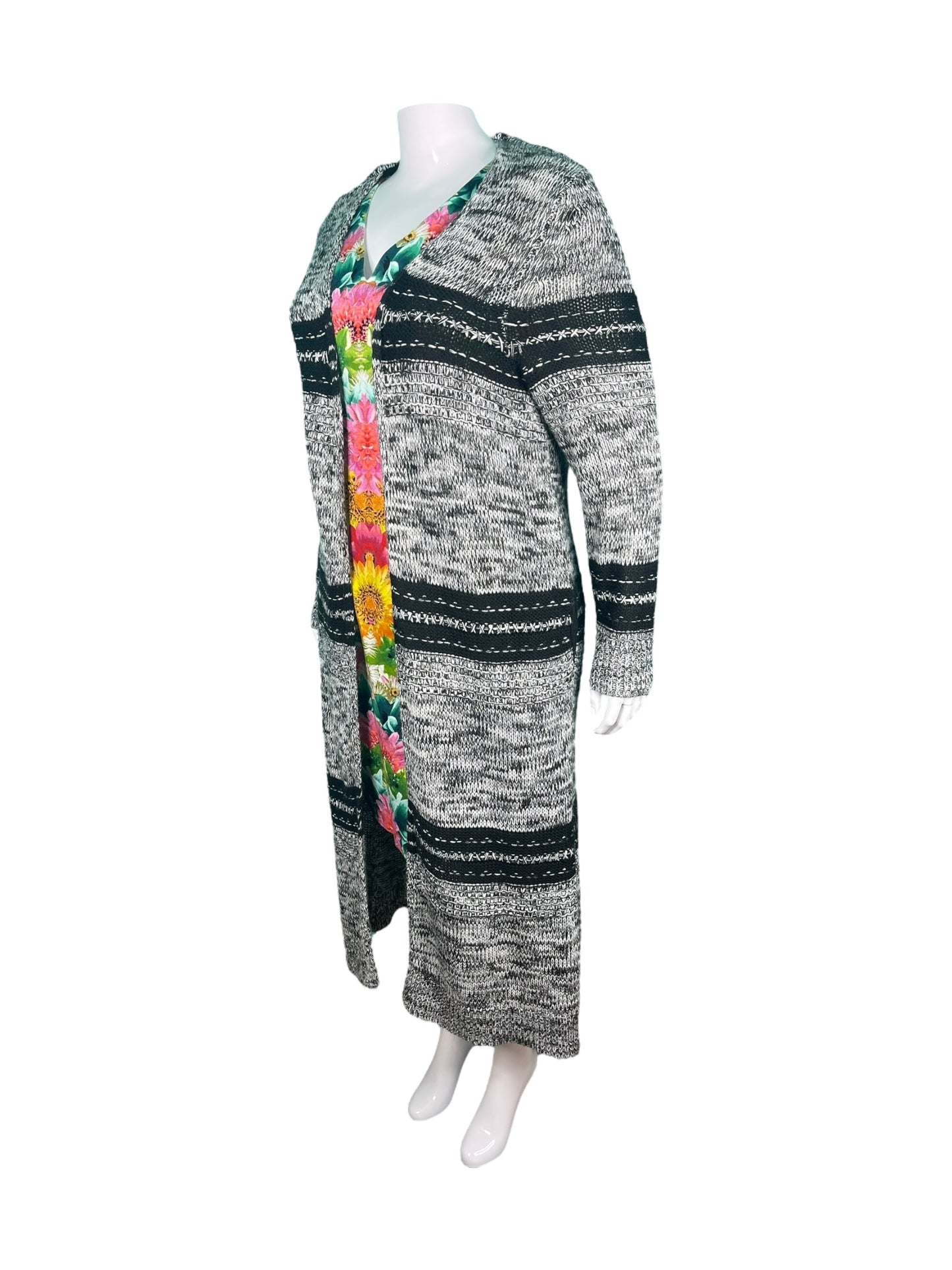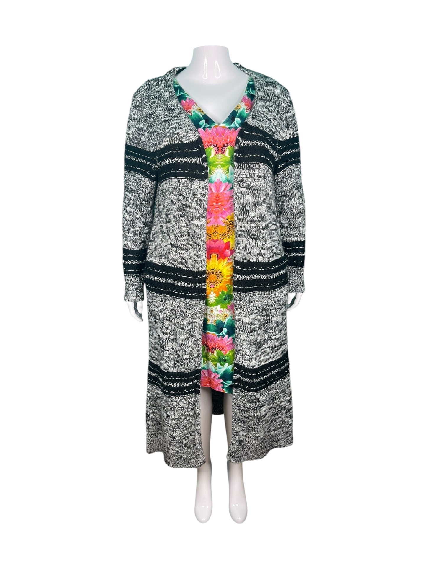 Grey & Black Striped Long Sleeved Cardigan