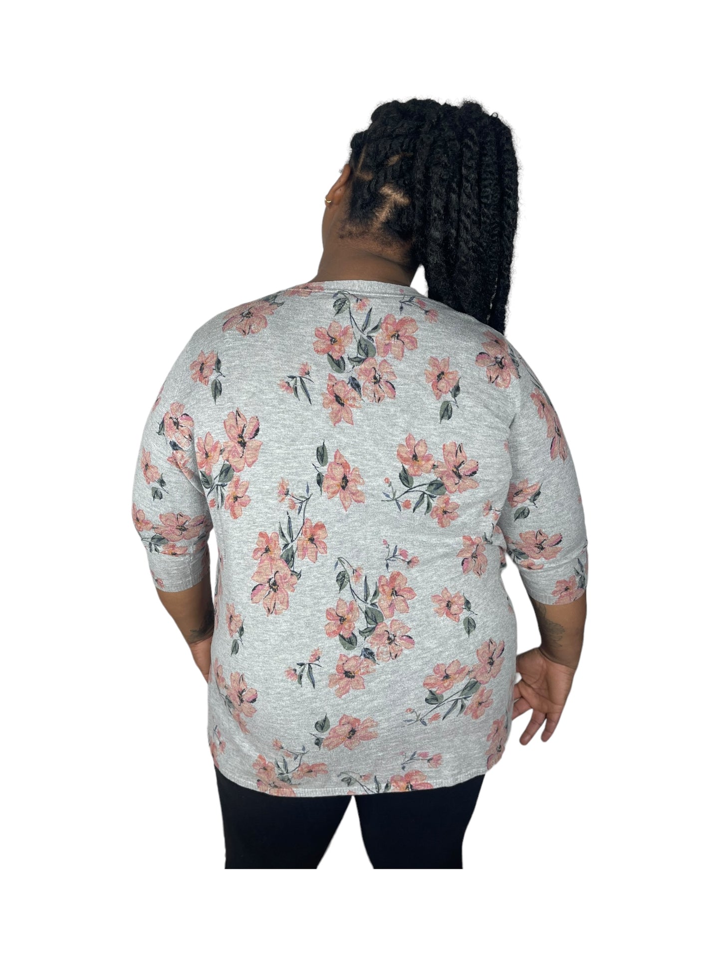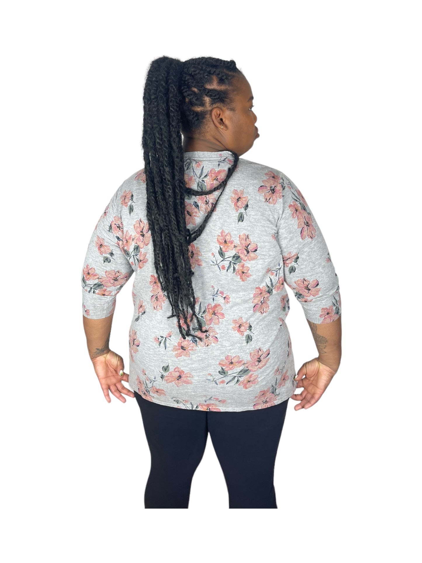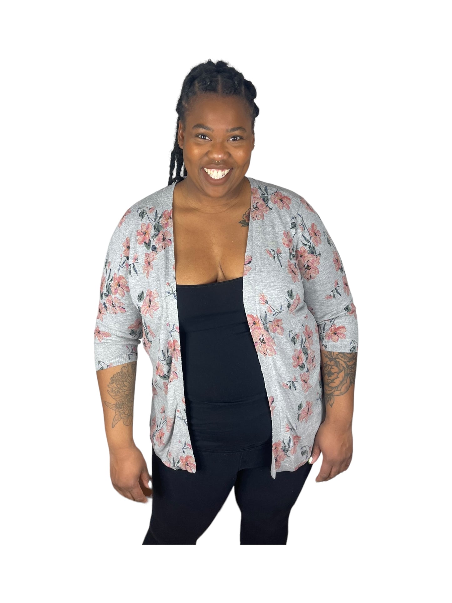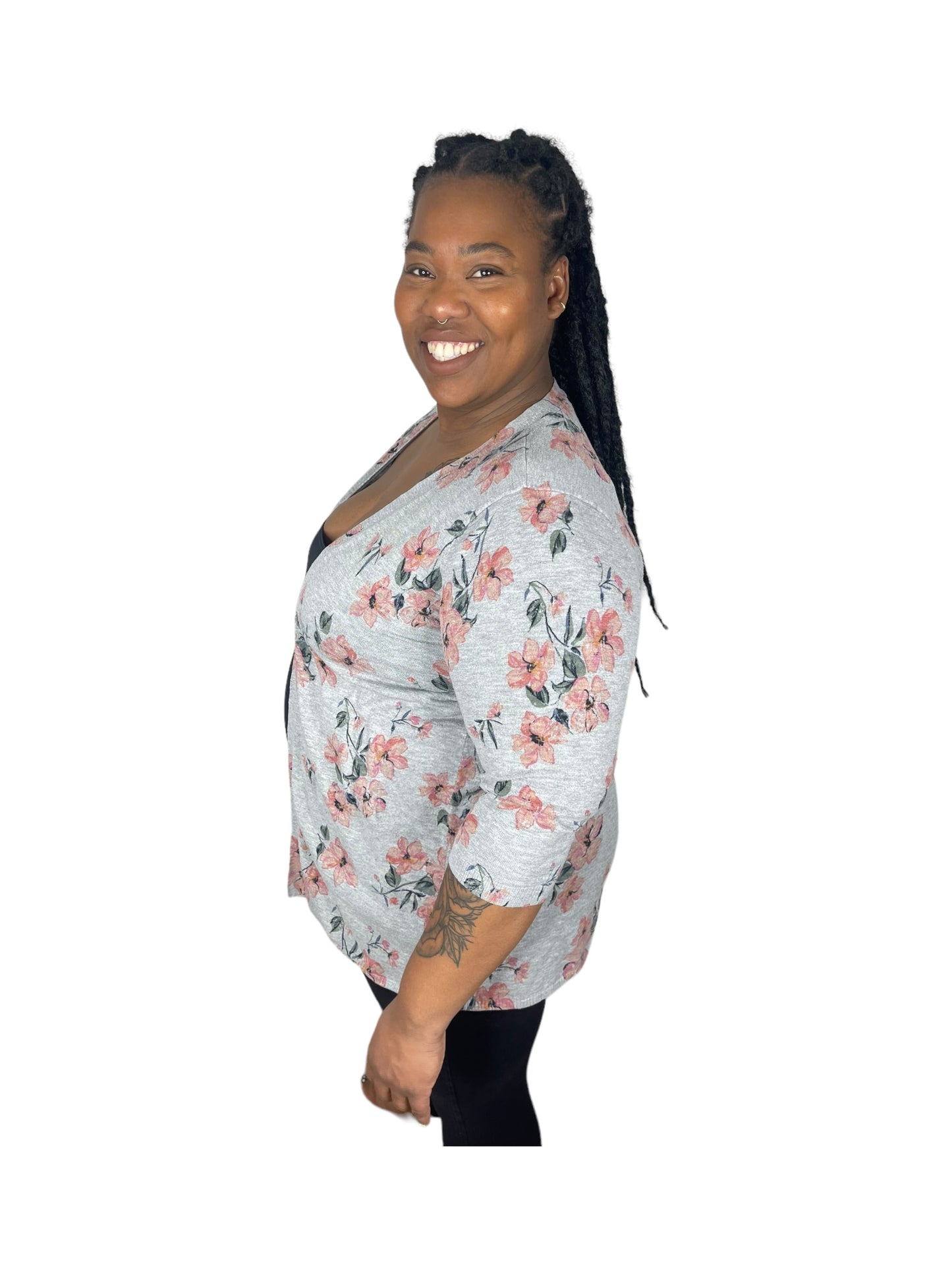 Grey Floral 3/4 Sleeved Cardigan (2)