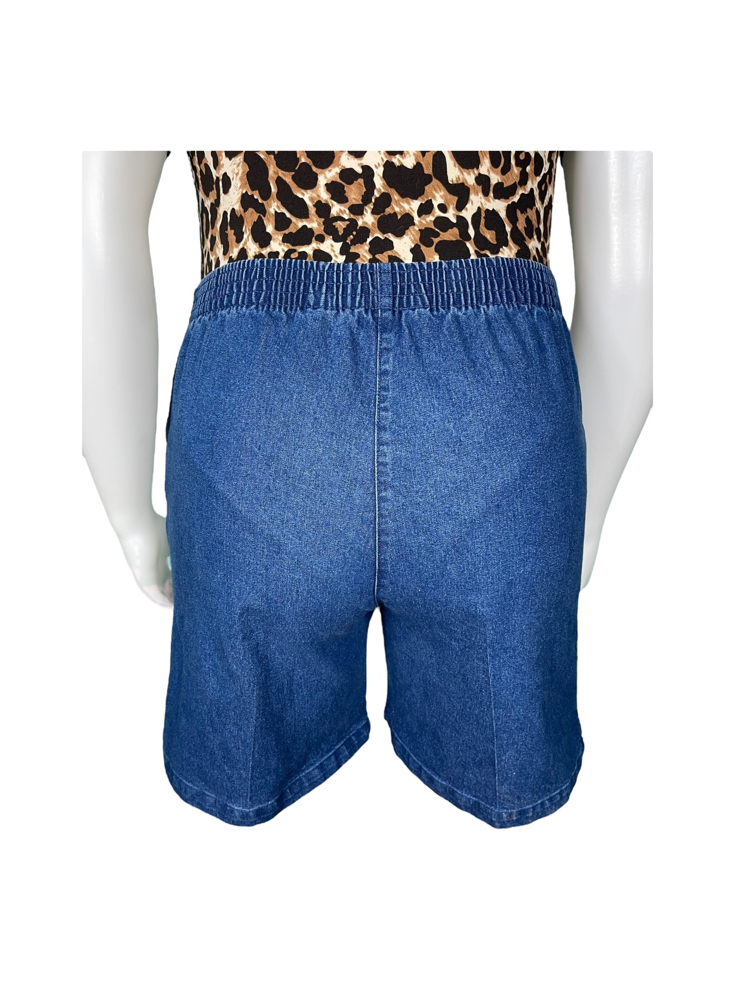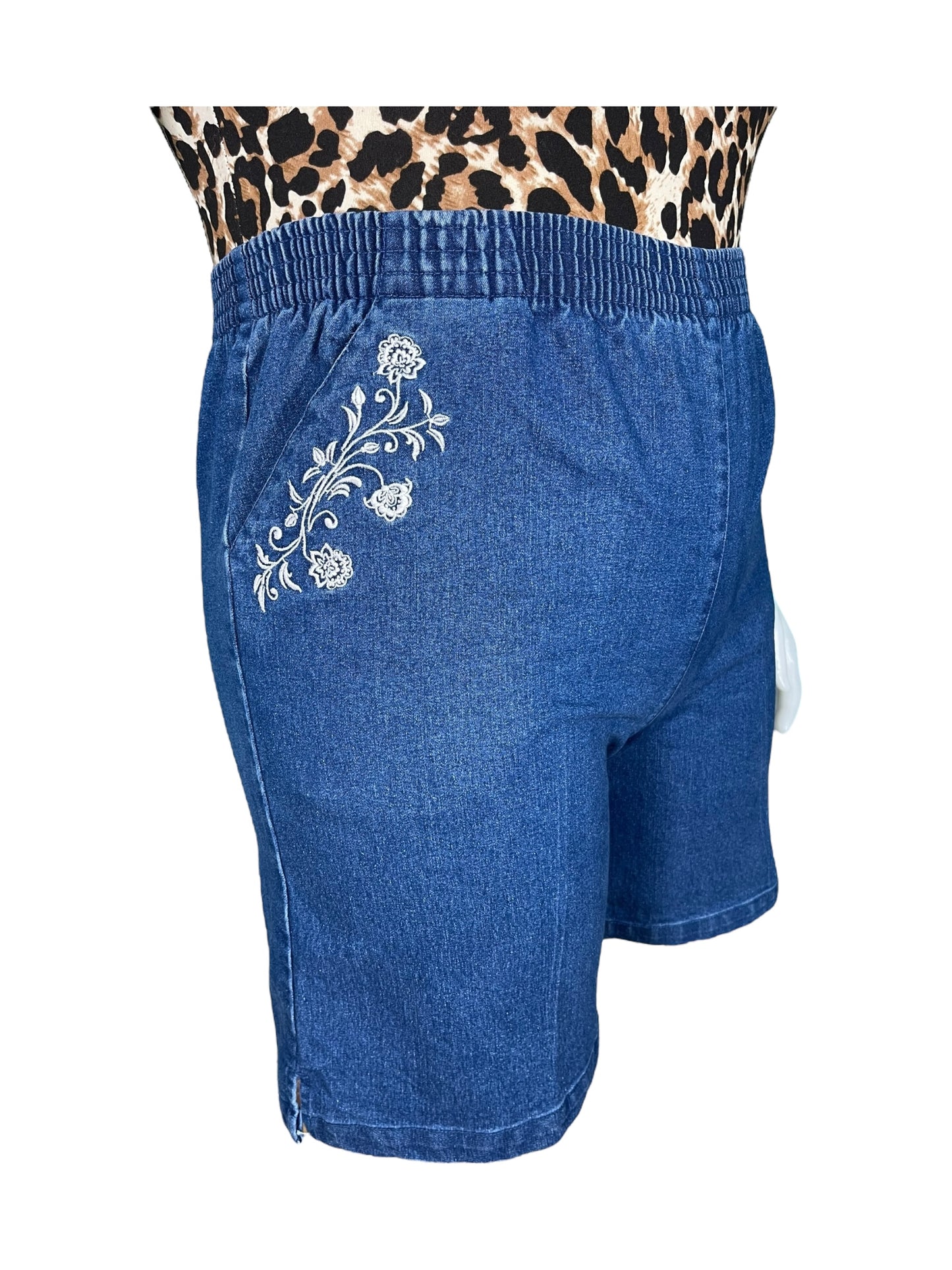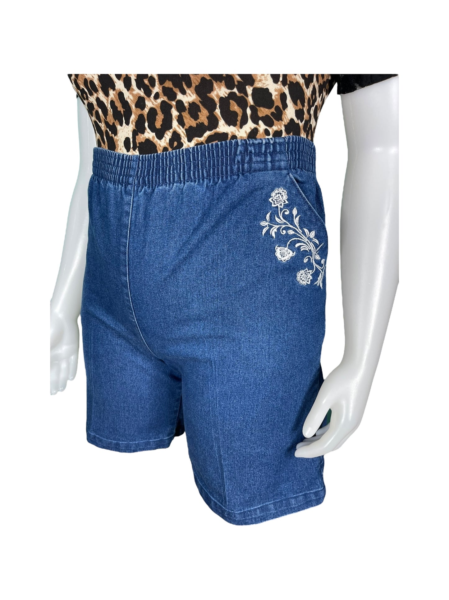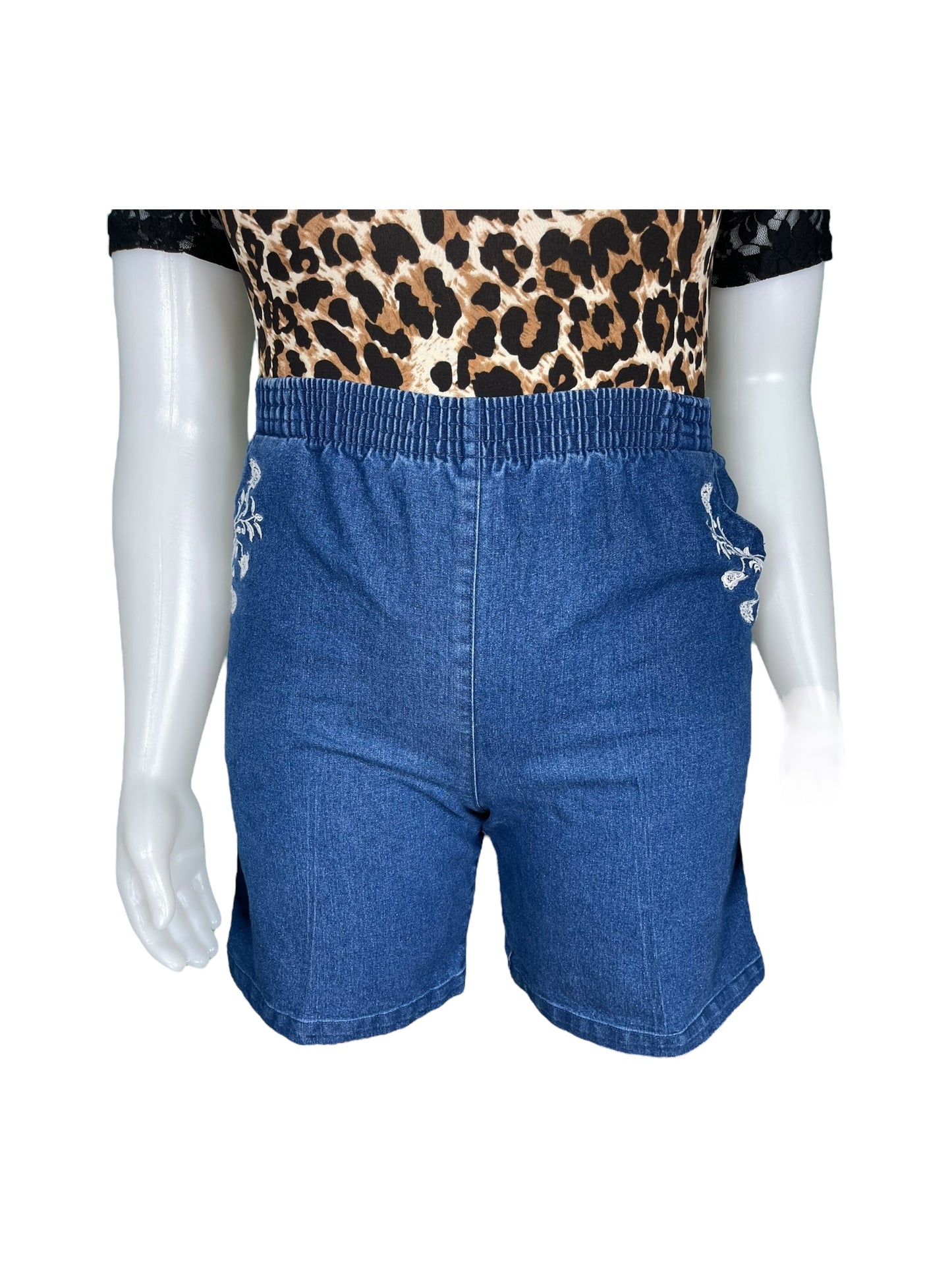 Vintage Blue Denim Shorts w/ White Embroidered Floral on the Pockets