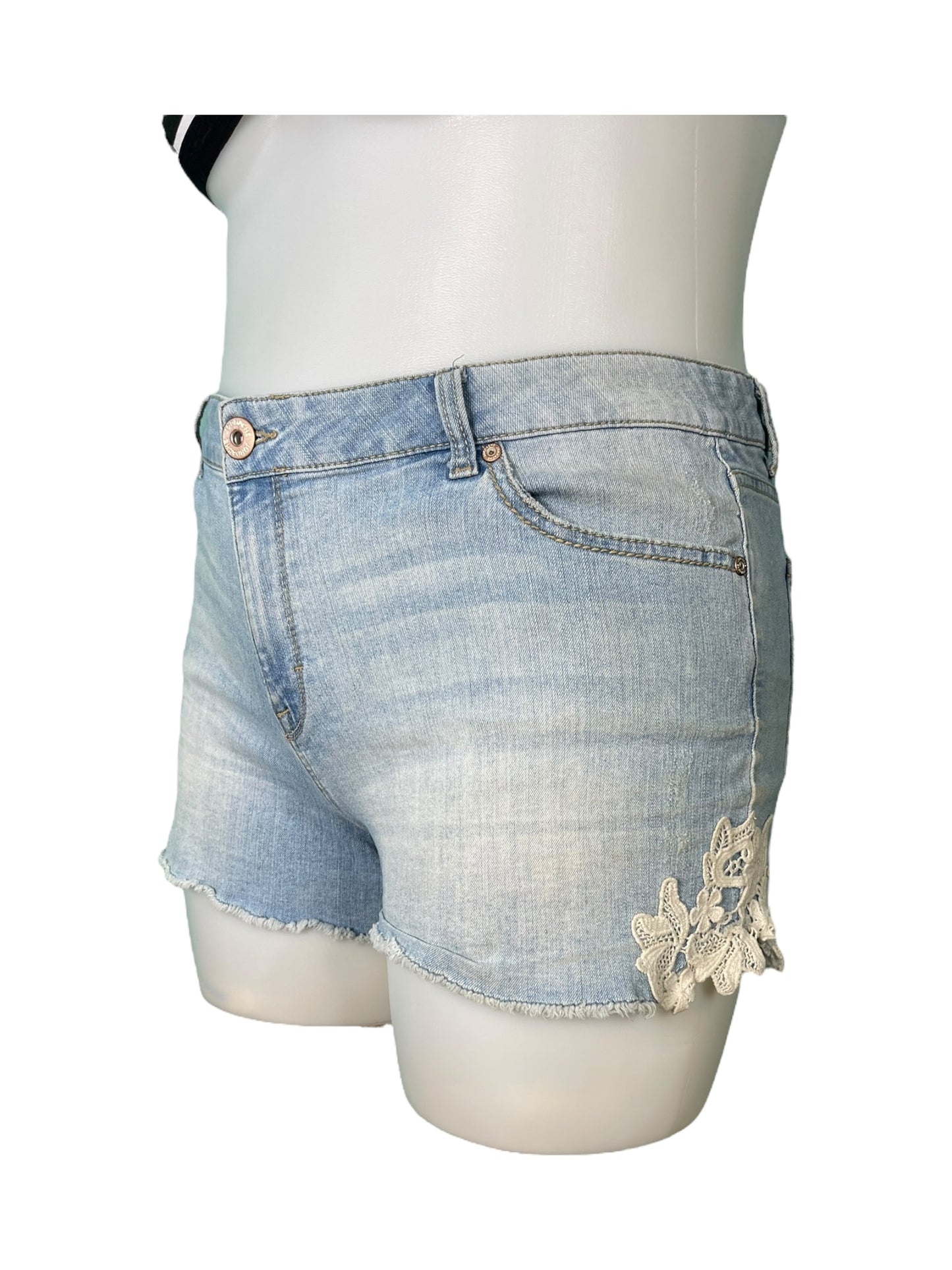 Light Blue Lace Side Detailing Jean Shorts