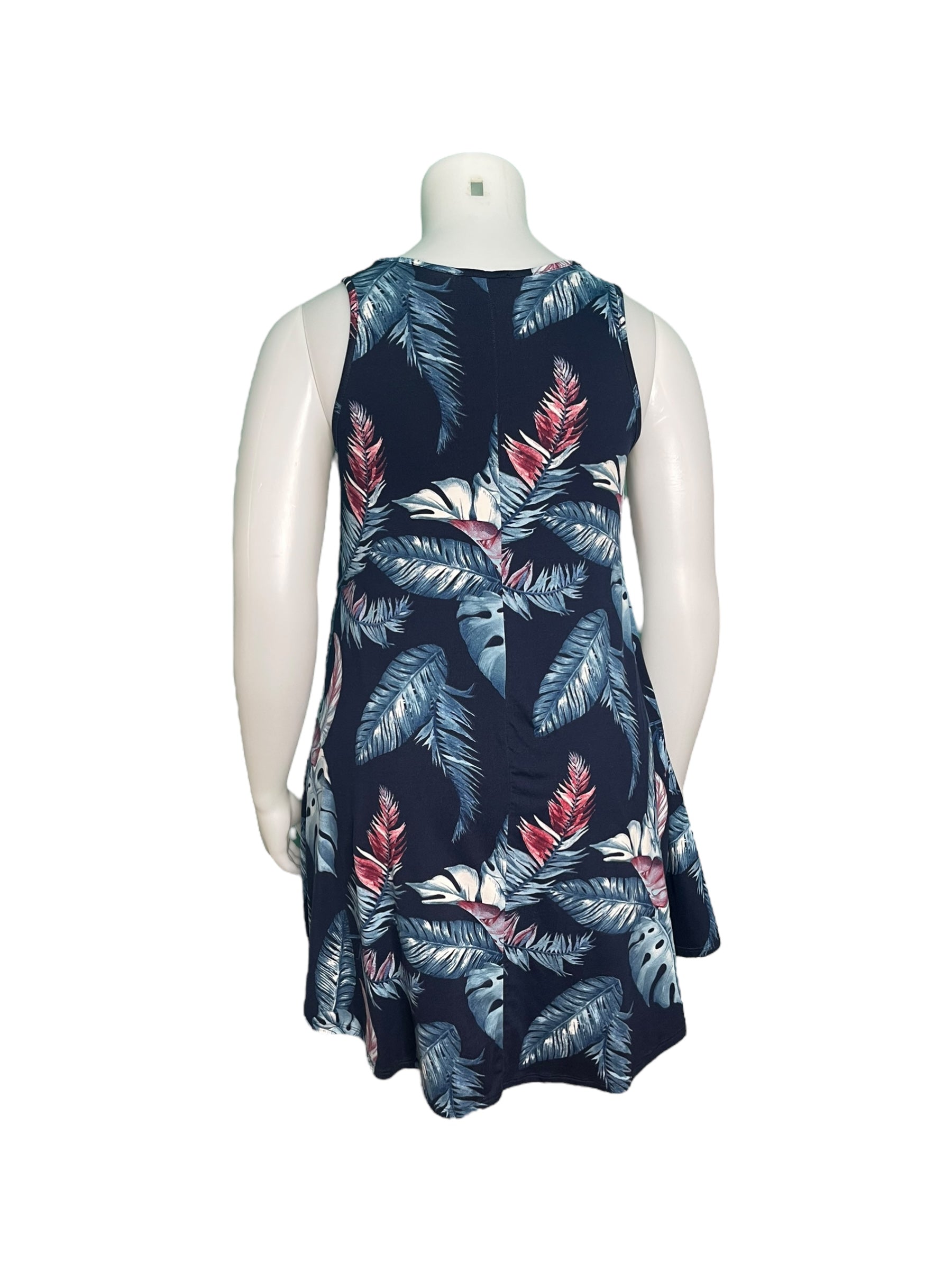 Navy Blue w/ Tropical Patterned Sleeveless Mini Dress