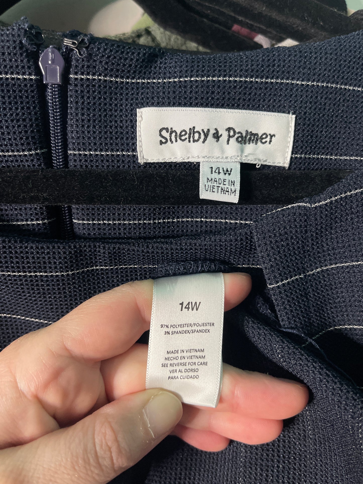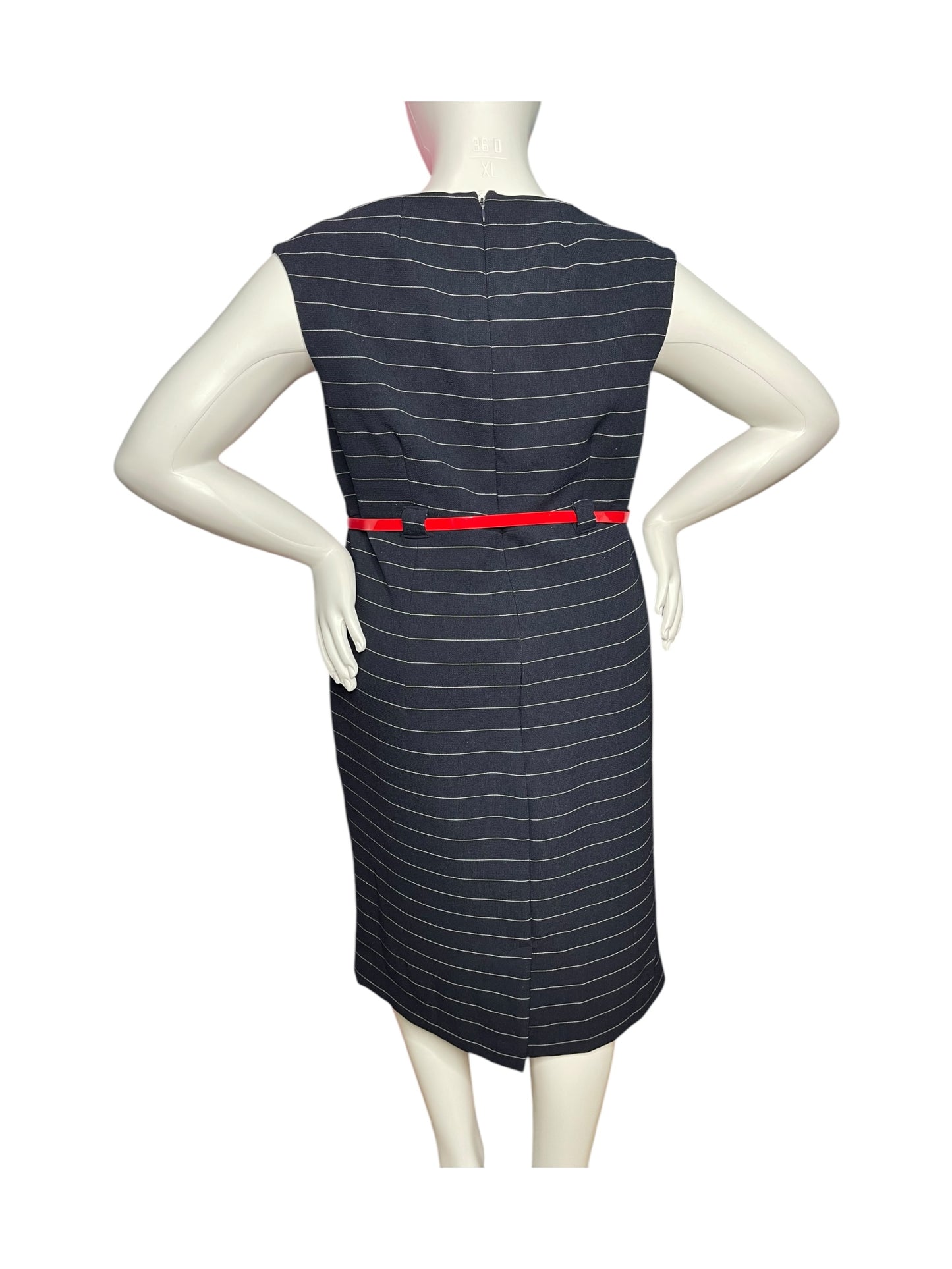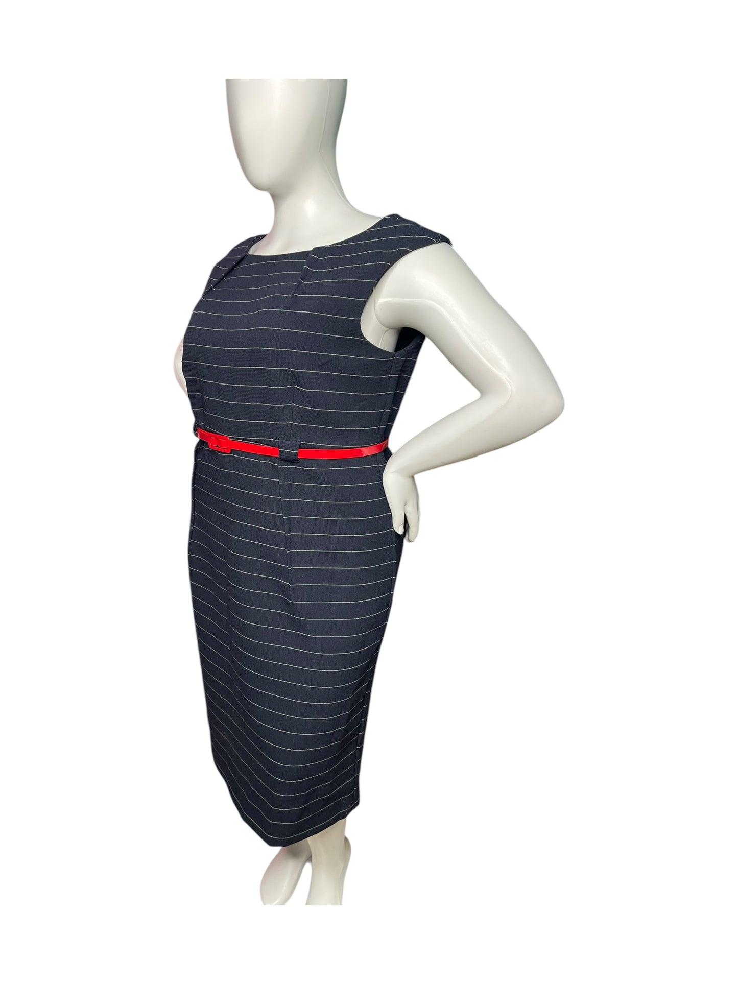 Navy Pinstripe Sleeveless Dress w/ Red Belt