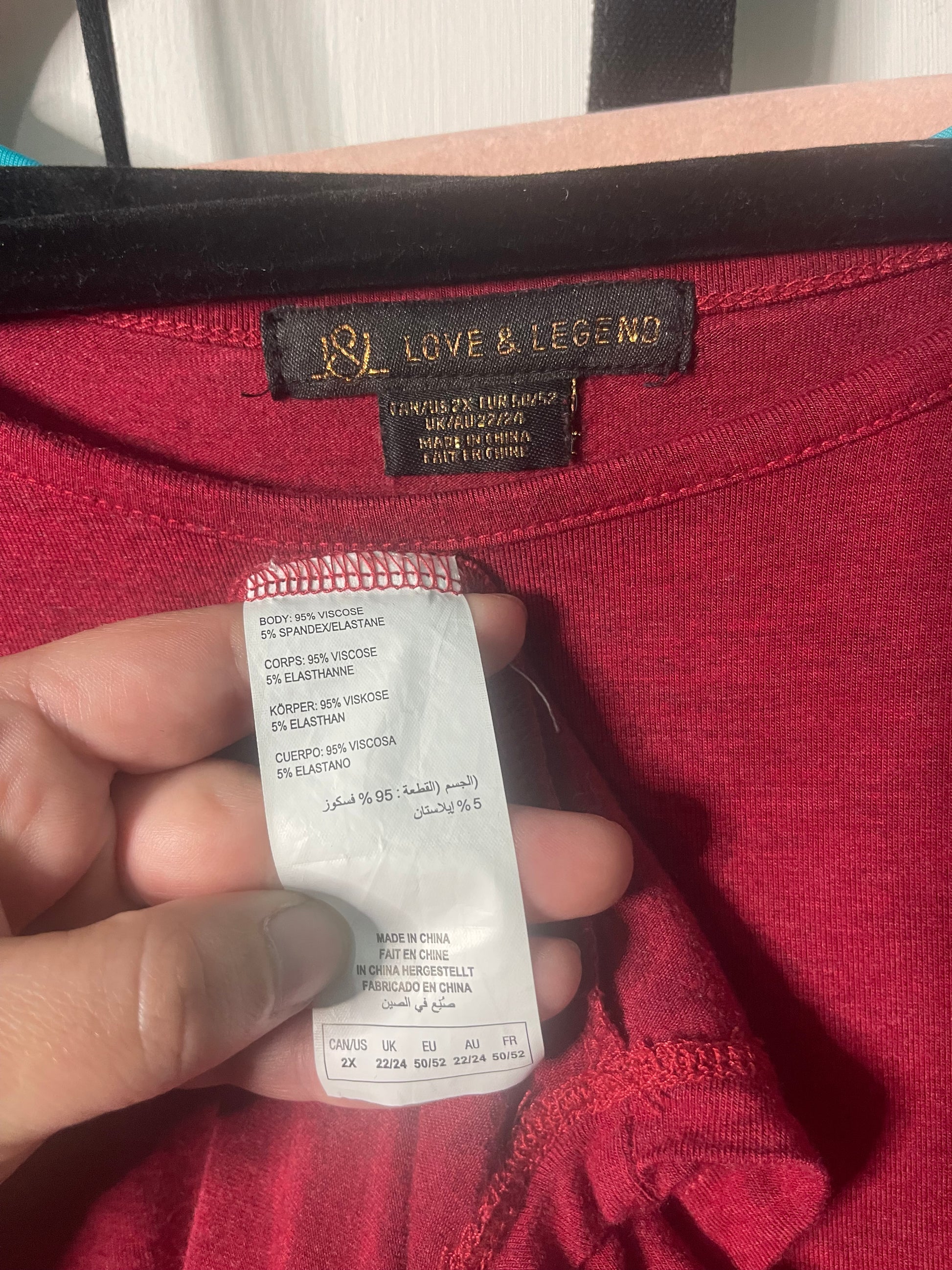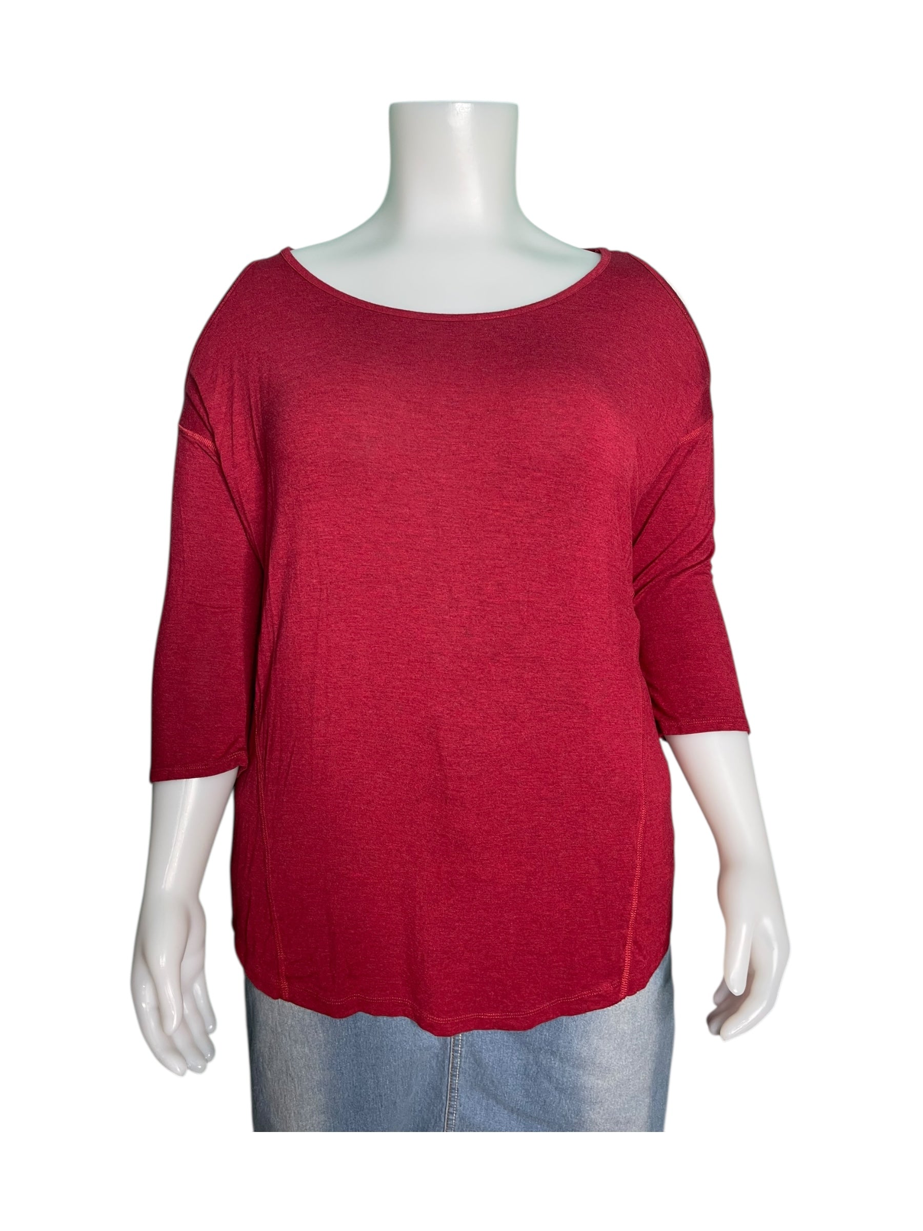 Red Crew Neck 3/4 Cold Shoulder Blouse