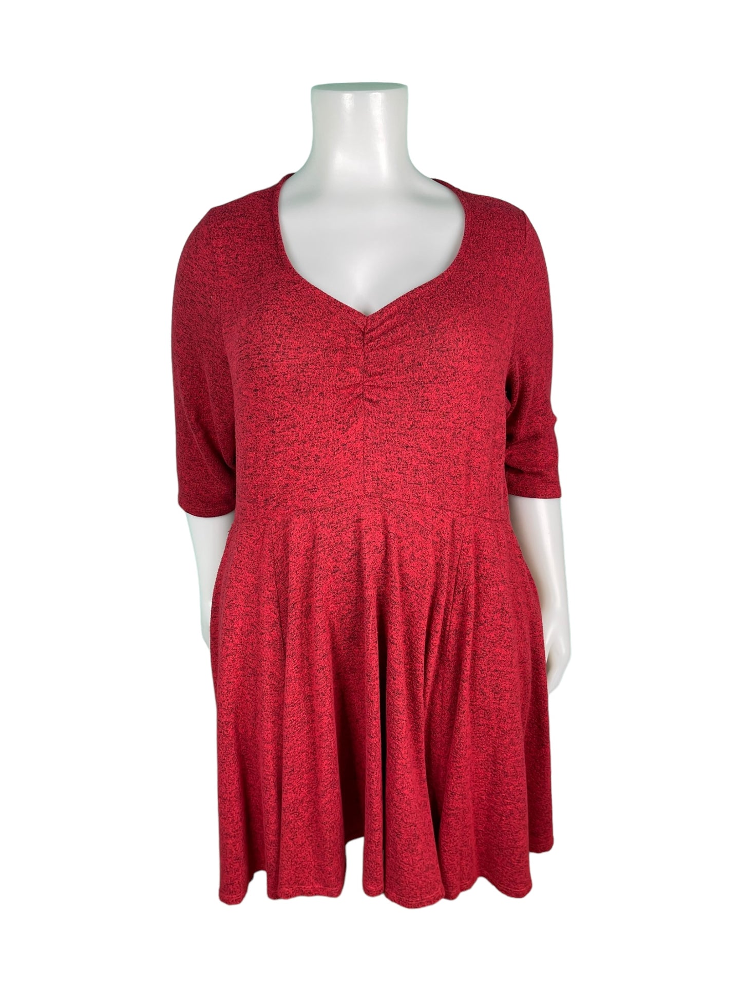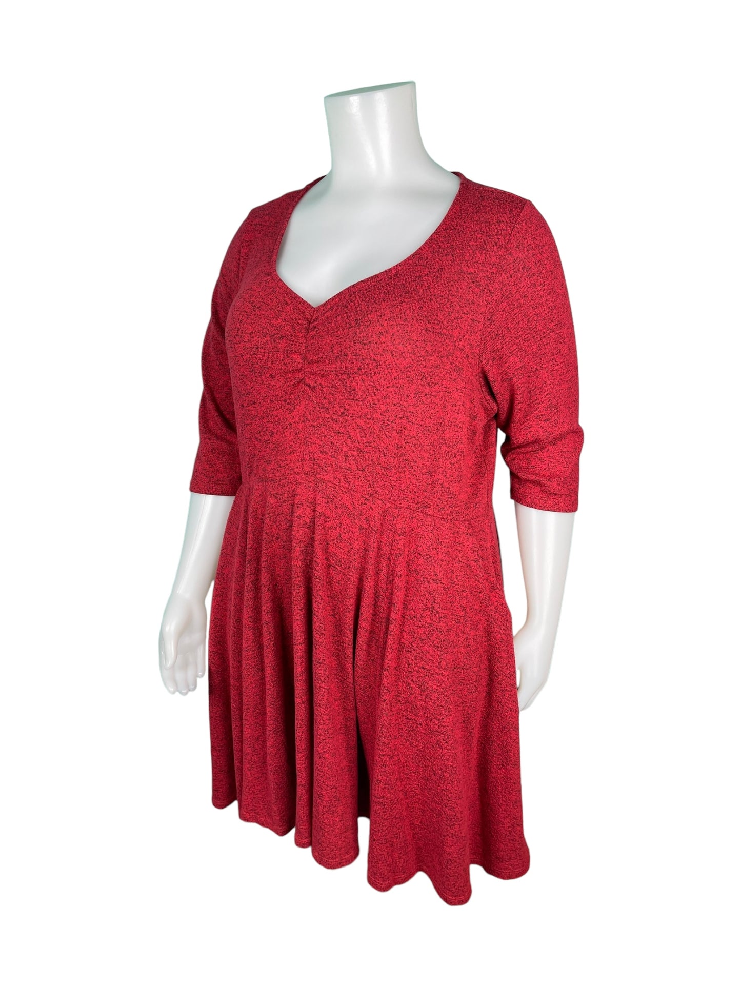 Red Sweet Heart Neckline 3/4 Sleeved Dress