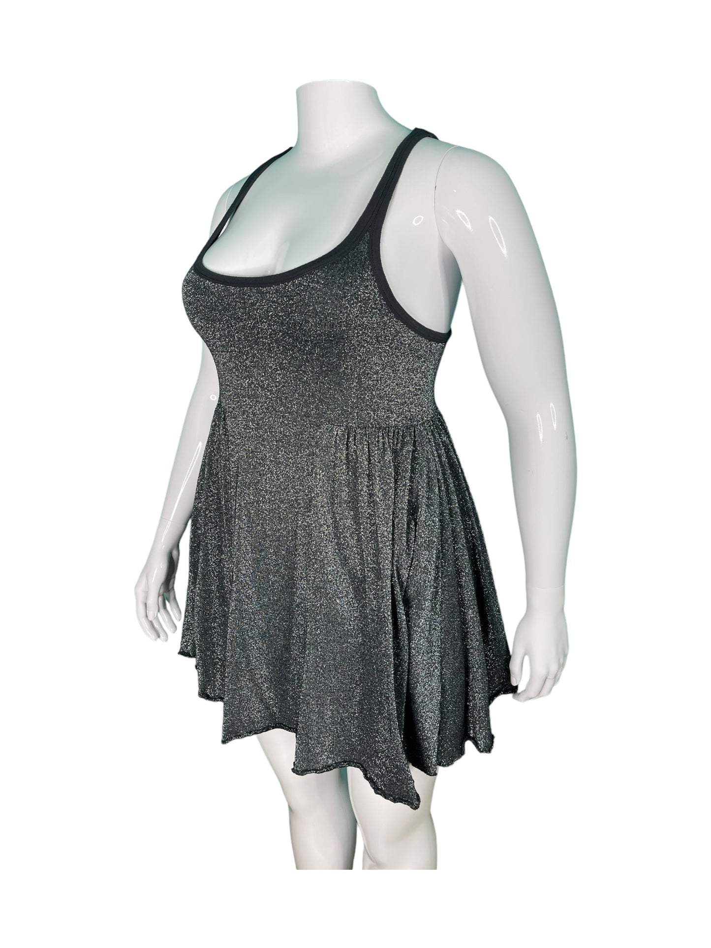 Black Sliver Sparkly Square Neckline Strappy Sleeve Dress