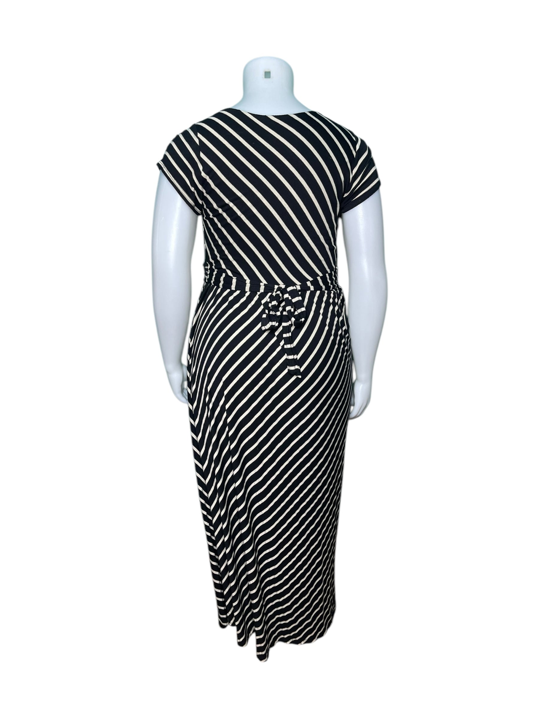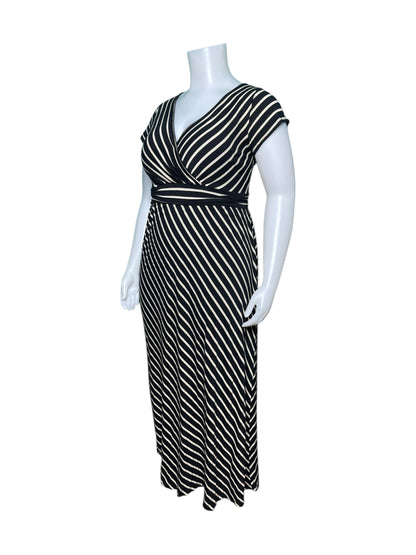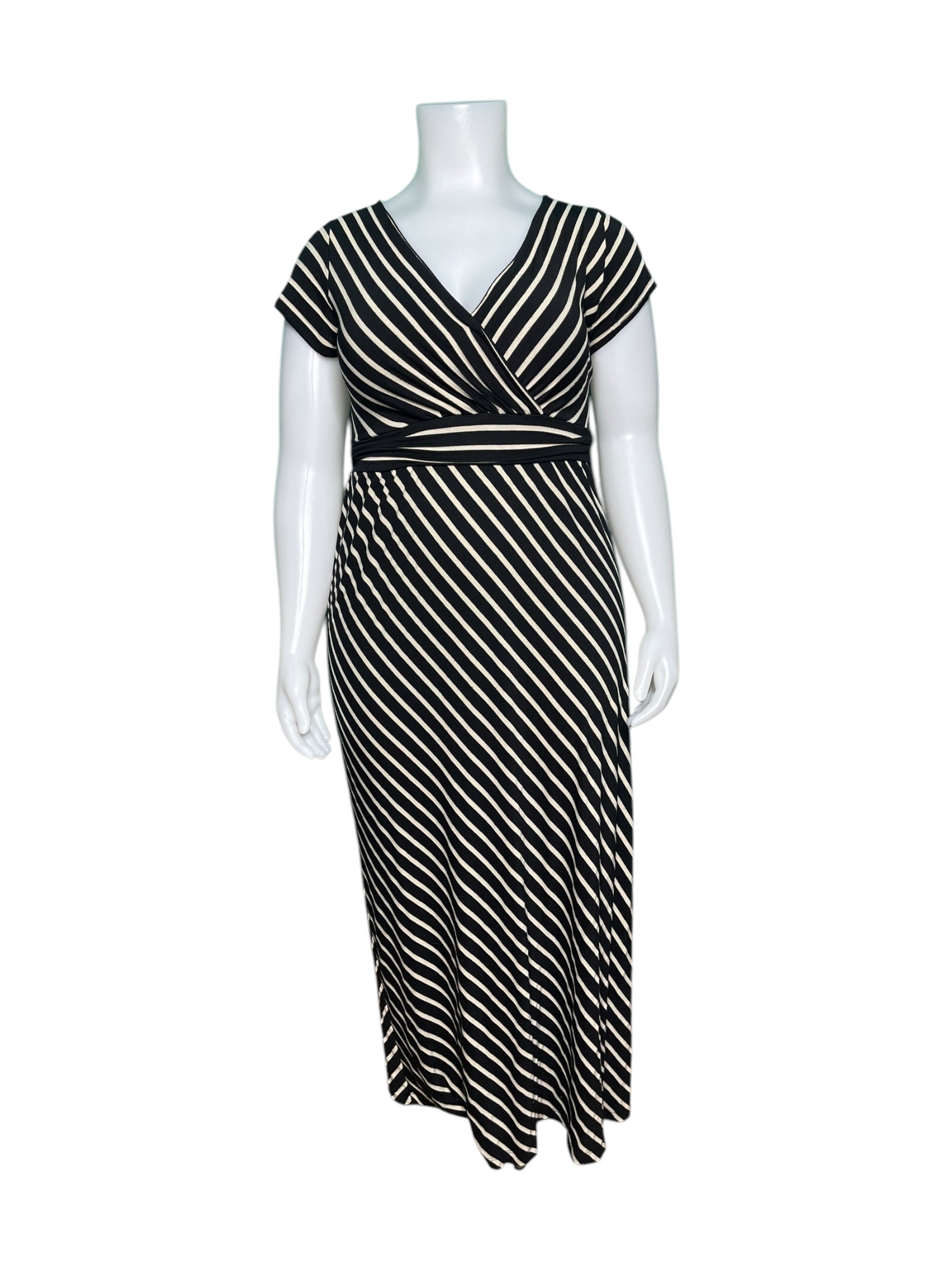 Black & White Stripped Cap-Sleeved V-Neck Maxi Dress