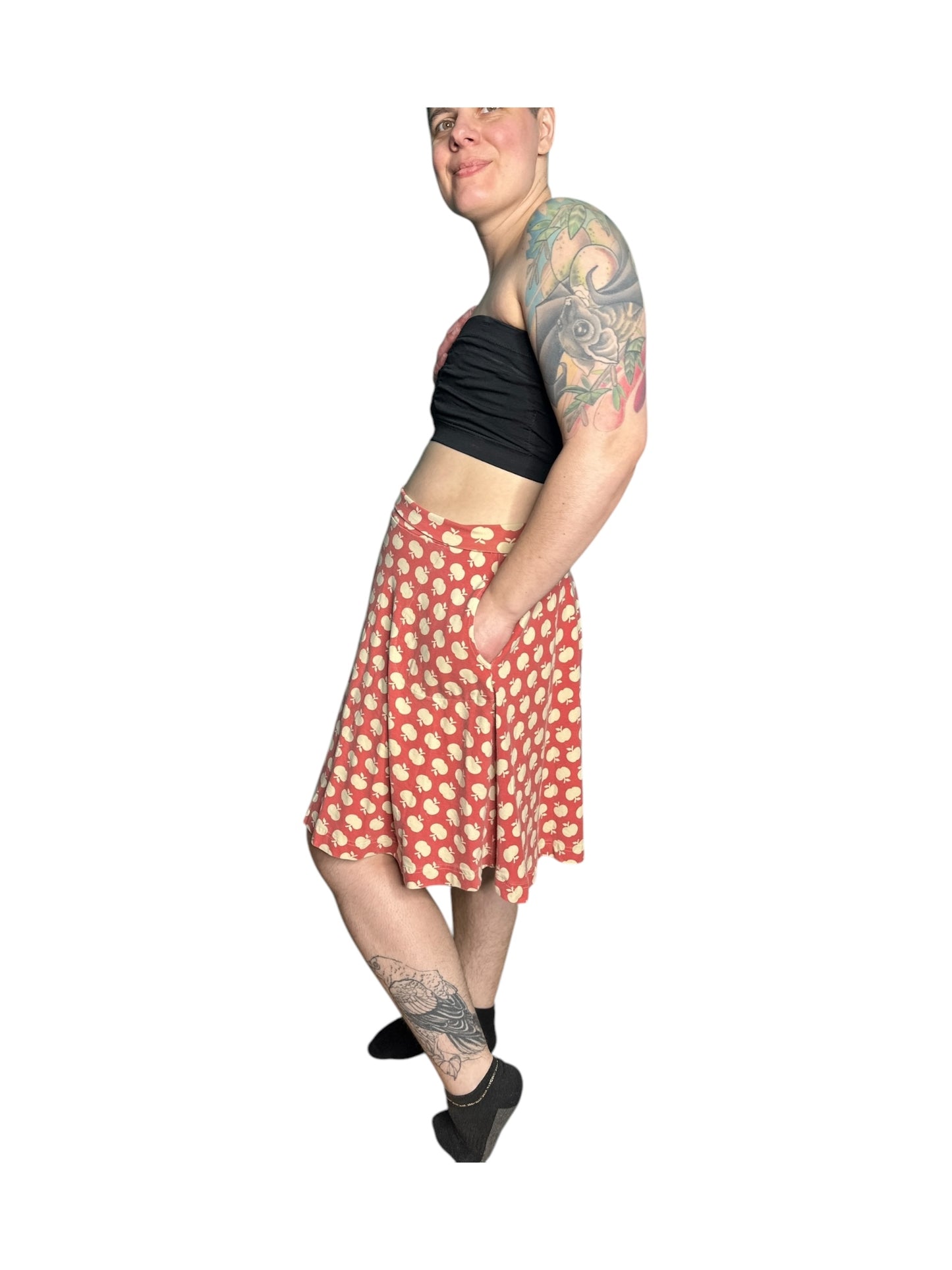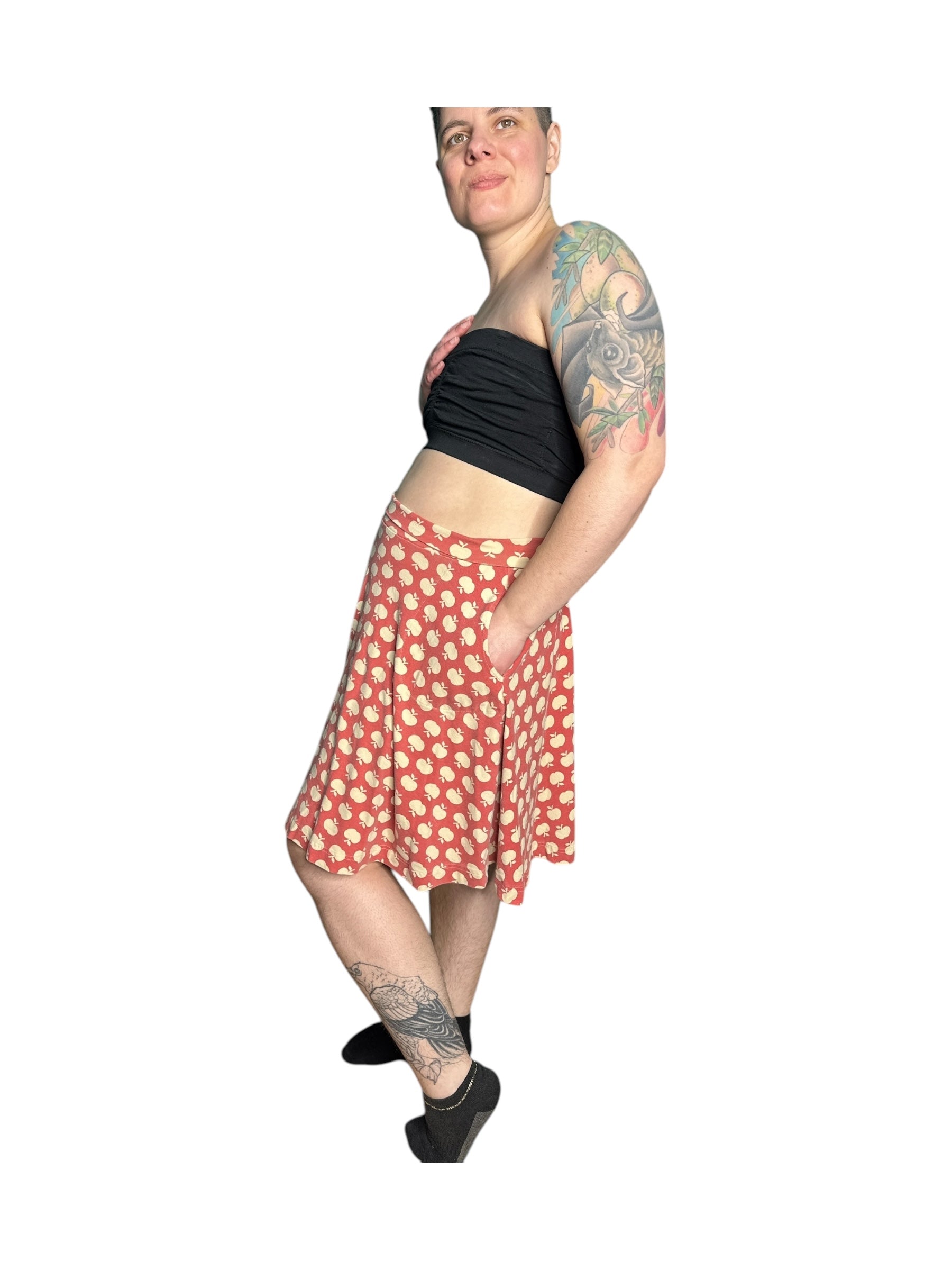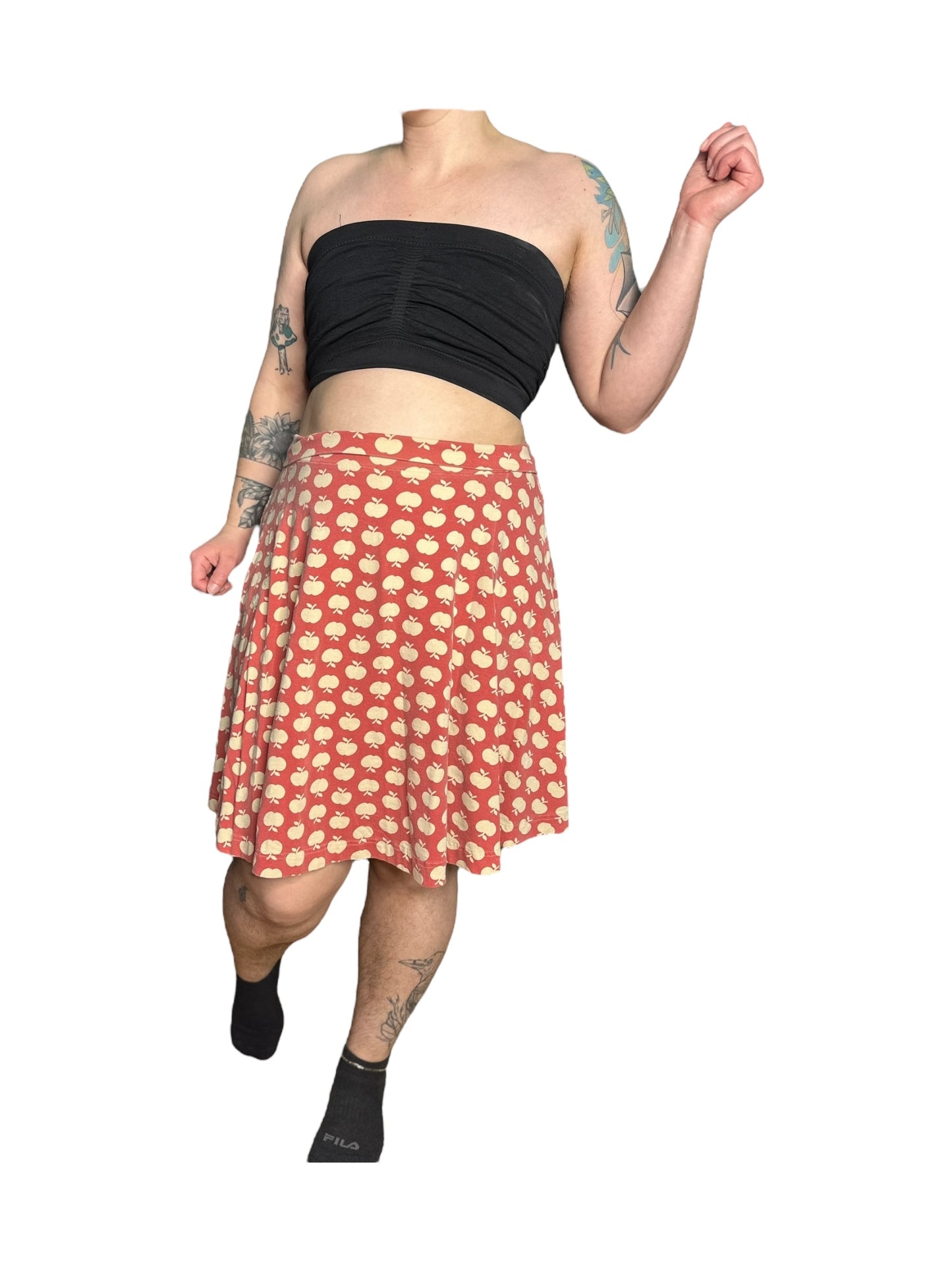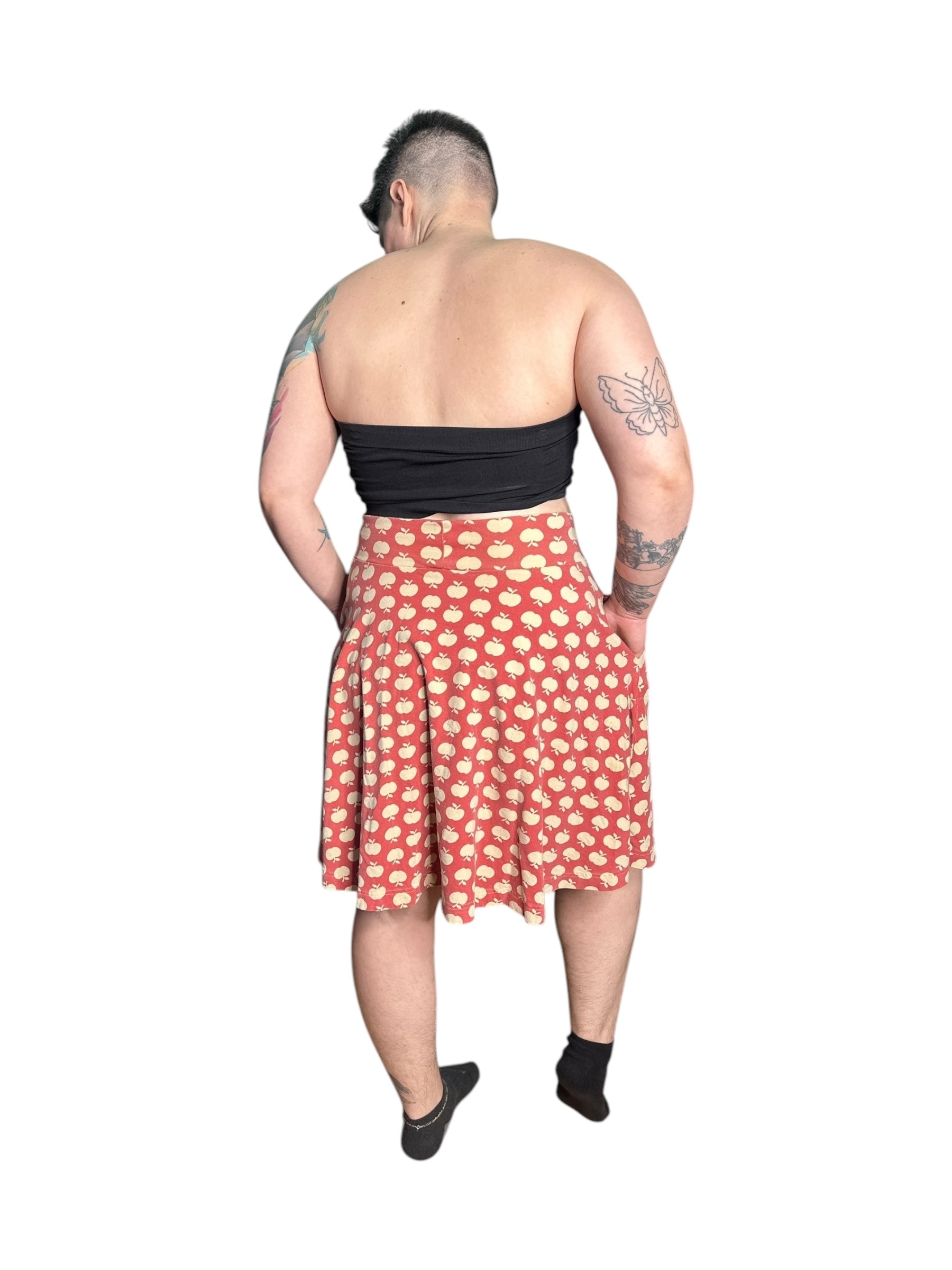 Vintage Orange w/ Beige Apple Pattern Knee length Skirt