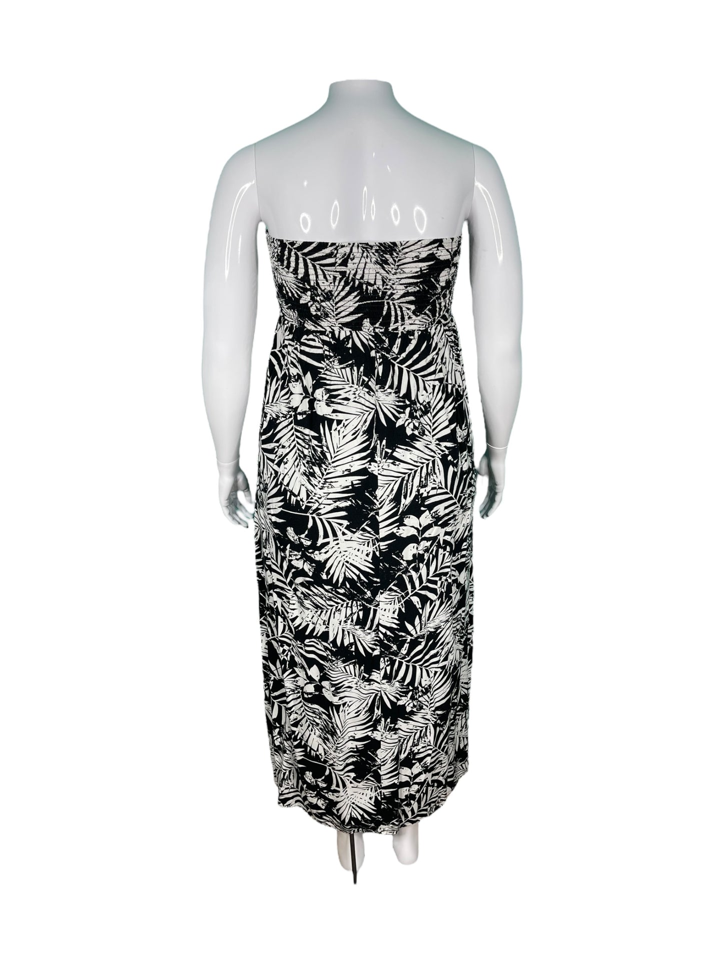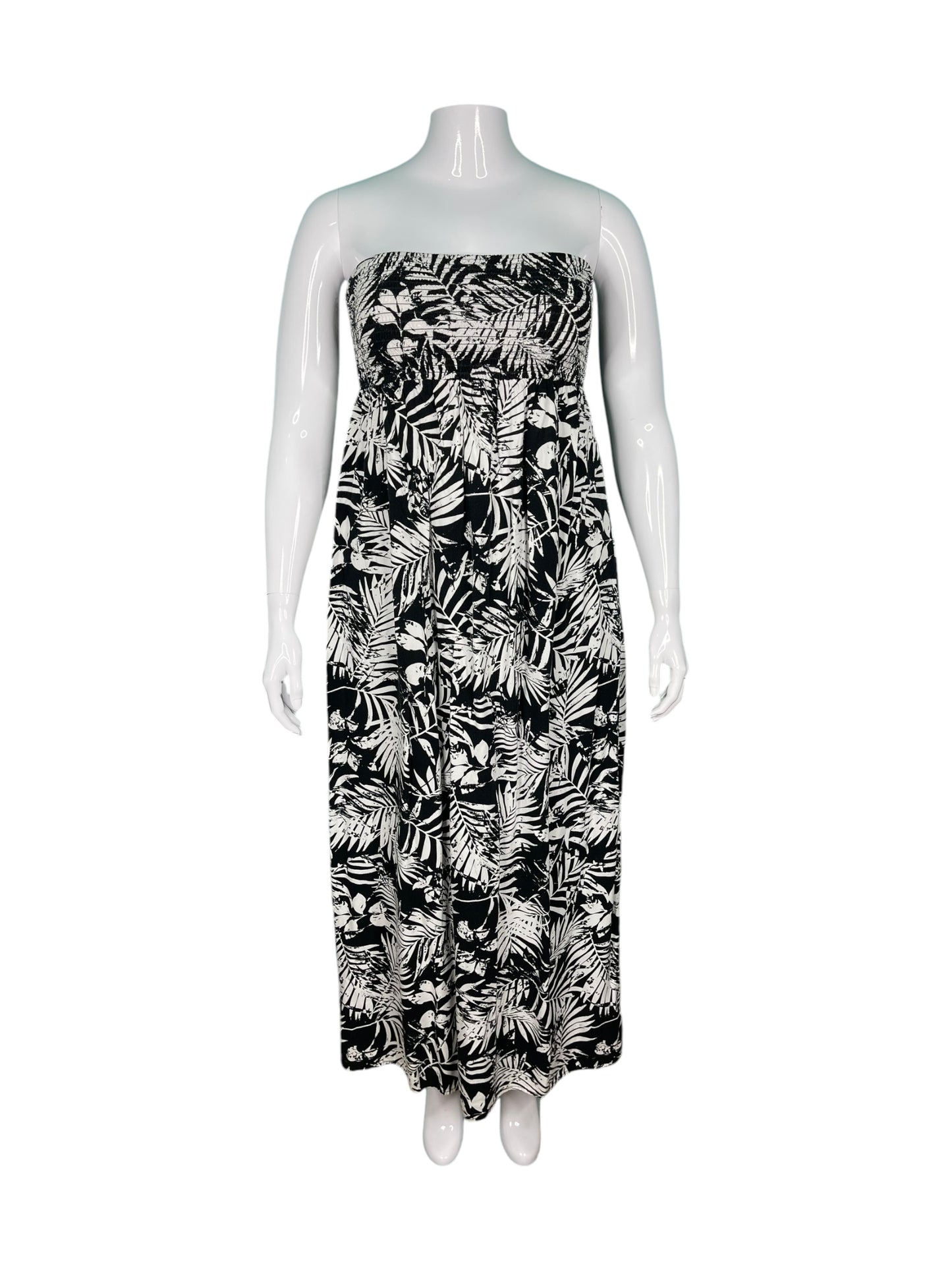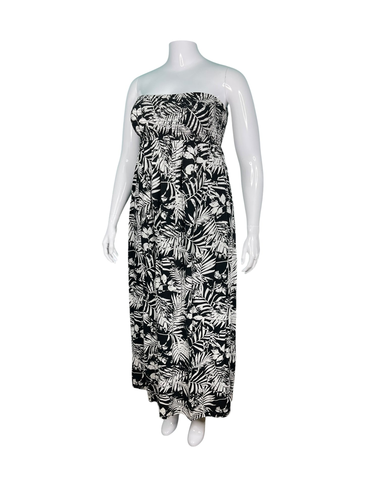 White & Black Strapless Floral Maxi Dress