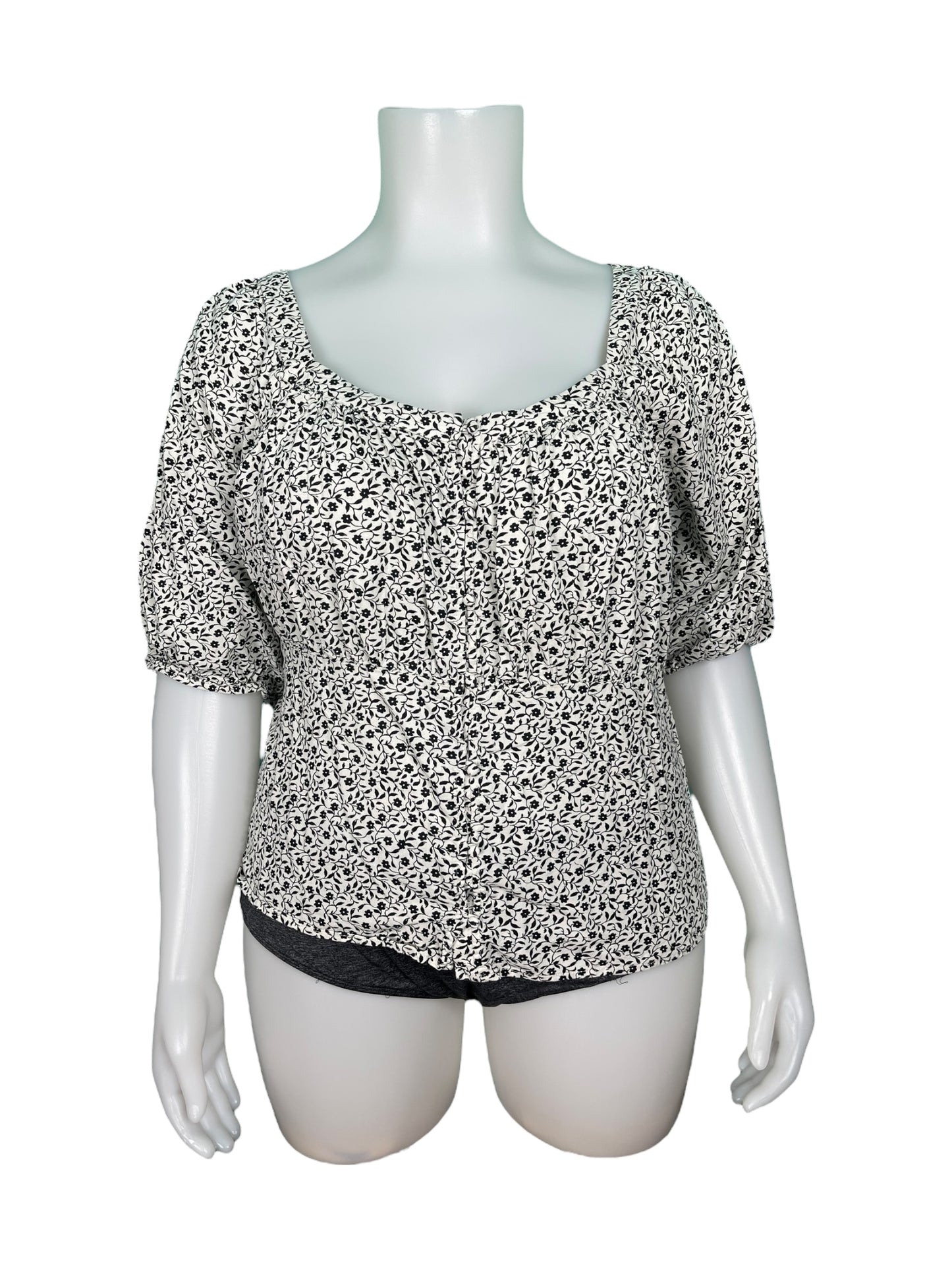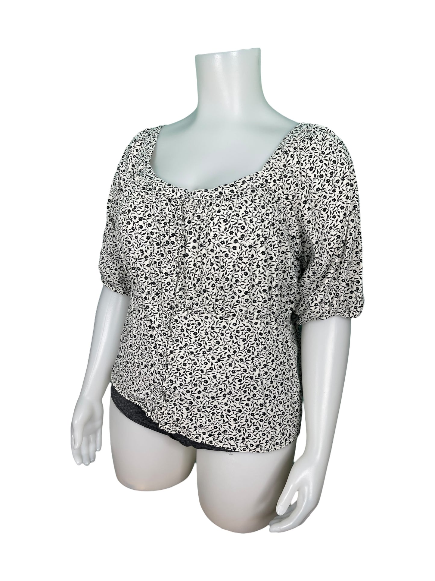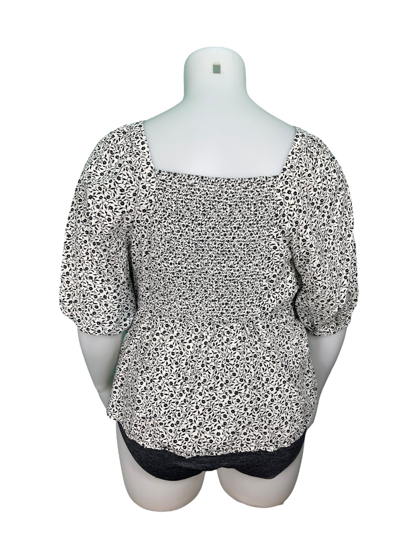 White w/ Black Floral Pattern Blouse